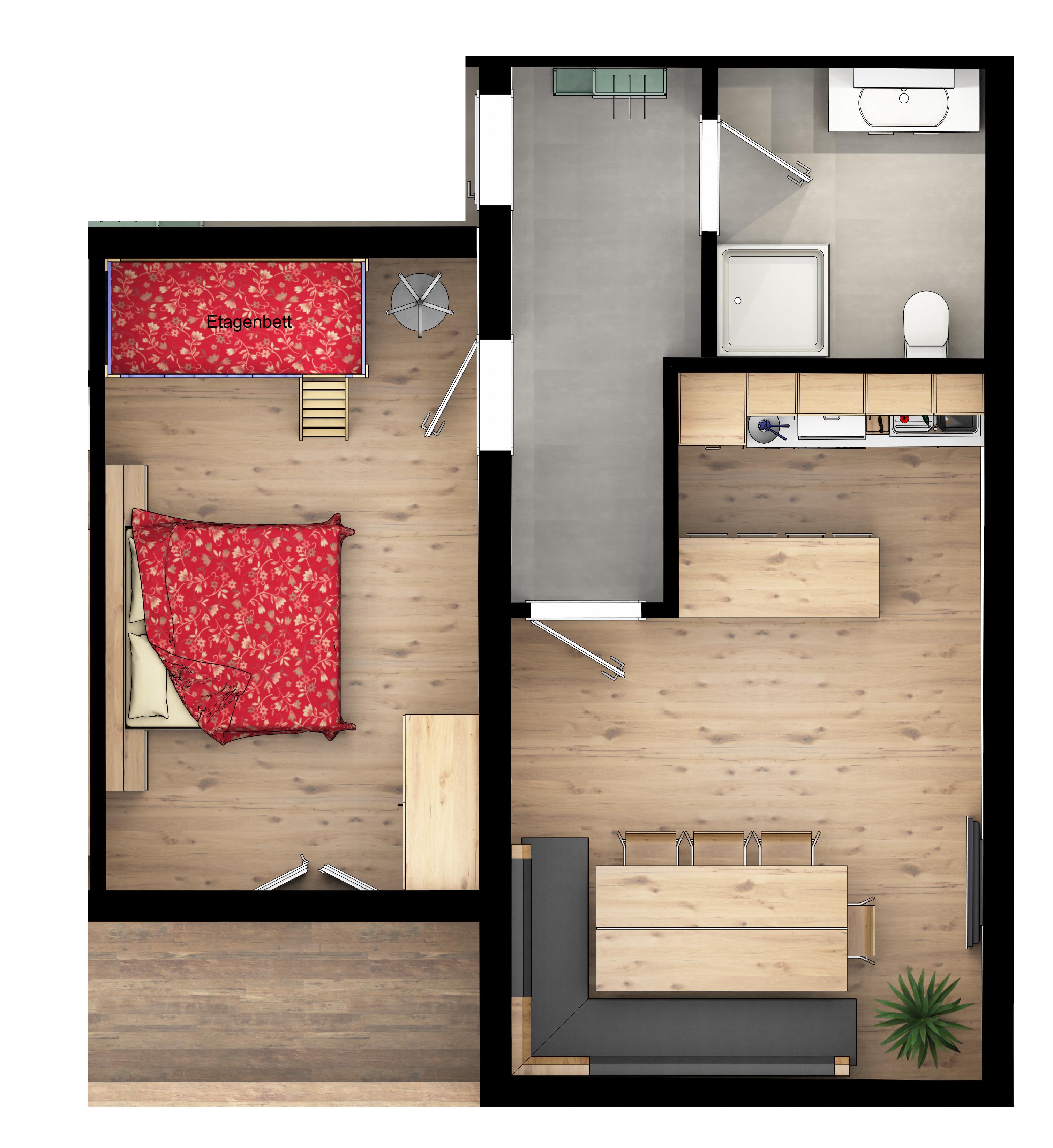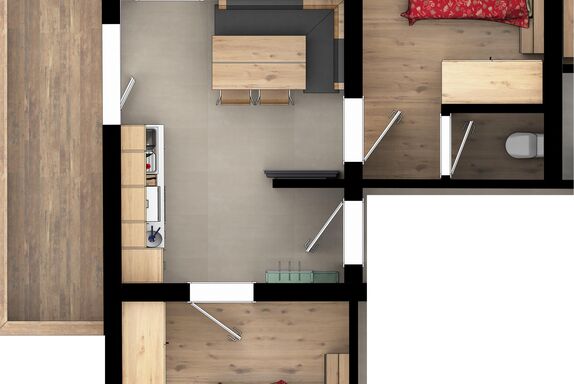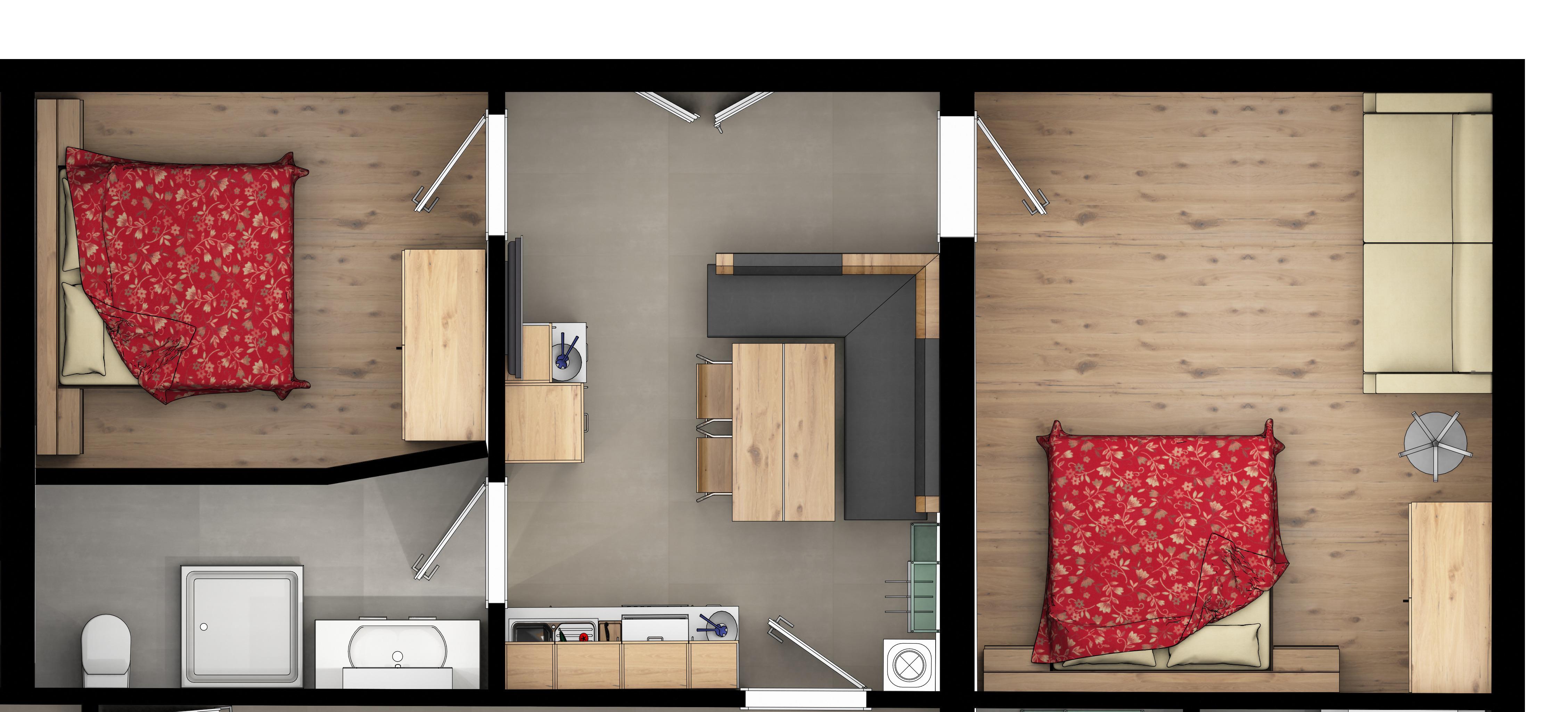 Appartement Breithorn - ca. 45m² für bis zu 4 Personen. Unser Appartement Breithorn besteht aus 2 gemütlichen Schlafzimmern mit Doppelbett, einer sehr gut ausgestatteten Wohnküche, einem geräumigen Bad mit barrierefreier Dusche/WC und noch einer separaten Toilette in einem der beiden Schlafzimmer. Alle unsere Wohnungen haben einen bzw. mehrere Fernseher mit Kabelanschluss und freies WLAN.