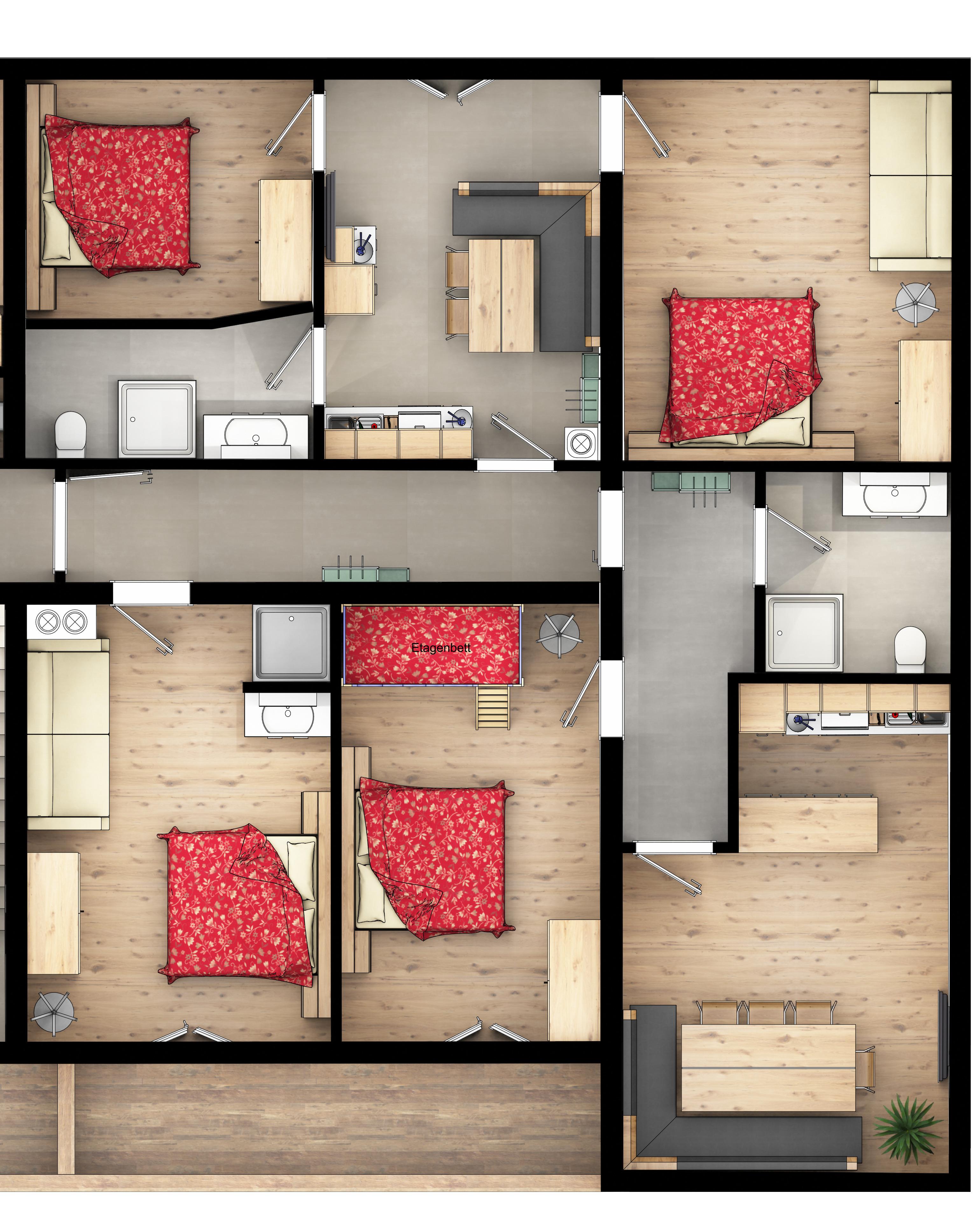 Es besteht außerdem die Möglichkeit, die beiden Appartements „Braggstein“ und „Sommerstein“ zu kombinieren. Somit entsteht unsere große Wohnung „Steinernes Meer“, welche mit einem extra Zusatzzimmer Platz für bis zu 12 Personen bietet!