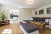 Die Ferienwohnung bietet Ihnen die Möglichkeit, in moderner Küche mit Vier-Feld-Ceranfeld zu kochen. Zur Ausstattung gehören außerdem Geschirrspüler, Kühlschrank und Kaffeemaschine für den morgendlichen Kaffee - Genuss, ein Wasserkocher und Kochgeschirr sowie Teller, Besteck, Gläser, Töpfe, Pfannen etc. 2 Schlafzimmer (1 Boxspringdoppelbett und 1 Eichendoppelbett ), 1 Wohnzimmer, 1 Küche mit Essbereich, 1 sehr großes Badezimmer mit Dusche und Badewanne, sowie ein extra WC. Auch Bettwäsche, Handtücher und Saunatücher werden zur Verfügung gestellt.