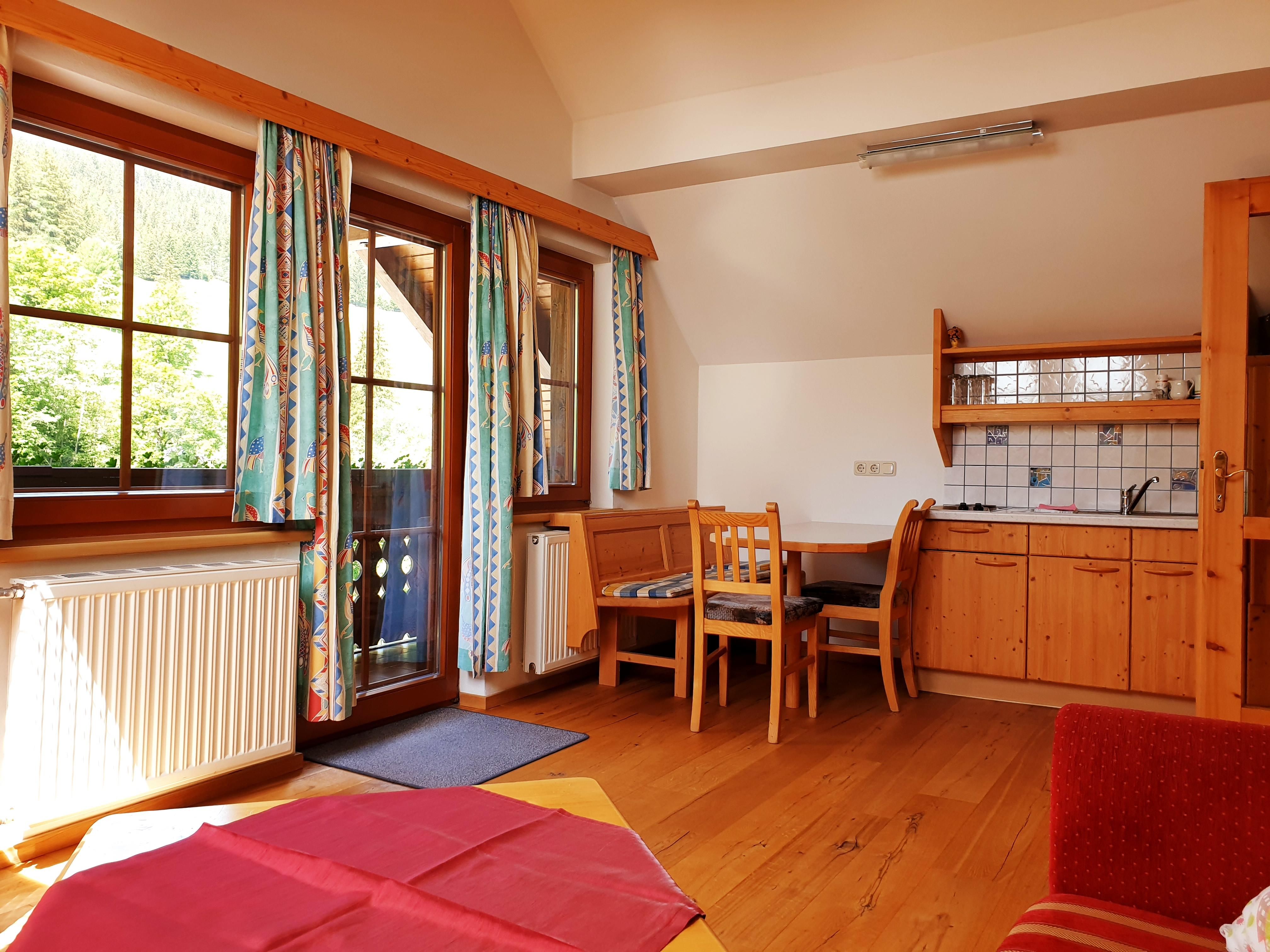 Ferienwohnung Tauerngold (111) 3-Sterne Ferienwohnung mit eigenem Hauseingang, zwei getrennten Schlafräume (ideal für Familien mit Kindern), DU-WC mit Fußbodenheizung, besonderes ruhig, Blick in das südliche und östliche Göriachtal, gemütliche Sitzcouch, komplett ausgestattet mit Herd, Kaffeemaschine, Kühlschrank, Flatscreen-Sat-TV, Telefon, gratis W-Lan (WIFI) im Appartement, Hotelsafe, Haartrockner, Bettwäsche, Hand-, Bade- und Geschirrtücher, Einrichtung im Landhausstil. Bei Buchung der Appartements mit Verpflegung entfällt die Endreinigung in Höhe von Euro 30,00. Diese wird vor Ort abgezogen.