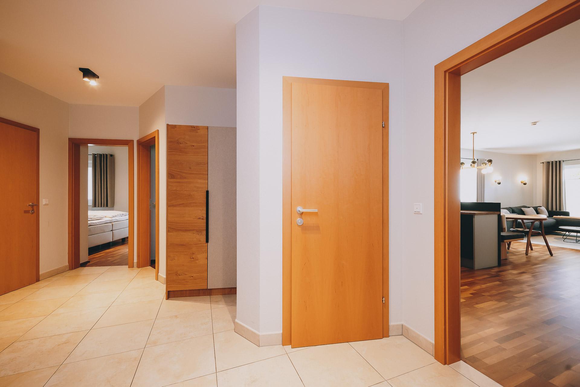 Zwei komplett getrennte Schlafzimmer, ein Masterbedroom , ein „White Room“ mit riesigem Panoramafenster und eine „Knautsch Couch“ für Familienabende stehen auf 77qm zur Verfügung!