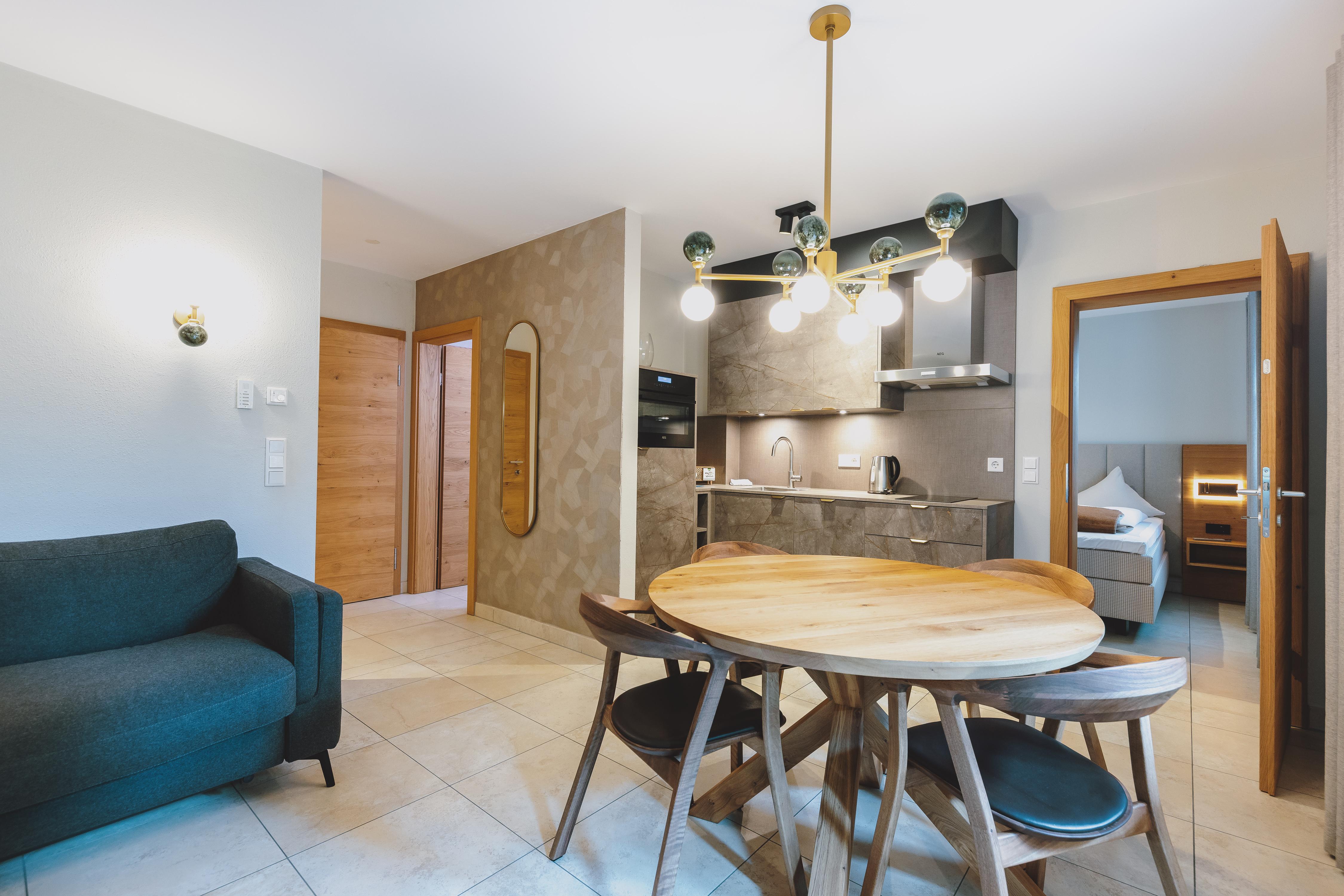 Ungezwungen Wohnen im Urlaub: Verbinden Sie die Bequemlichkeit und Unabhängigkeit eines Appartements mit den Leistungen eines Hotels! Das Interieur ist von höchster Qualität und eine moderne Interpretation des traditionellen Landhausstils. Diese Ferien-Refugien sind ideal für 2 bis 4Personen!