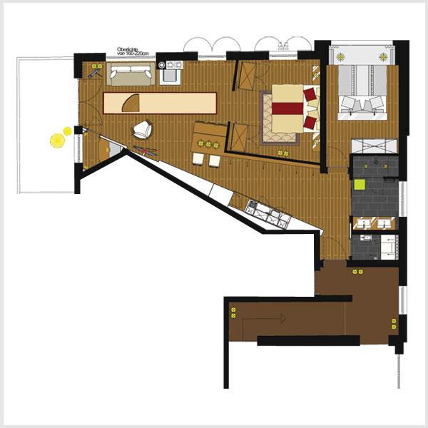 Zwei komplett getrennte Schlafzimmer, ein Masterbedroom , ein „White Room“ mit riesigem Panoramafenster und eine „Knautsch Couch“ für Familienabende stehen auf 77qm zur Verfügung!