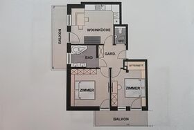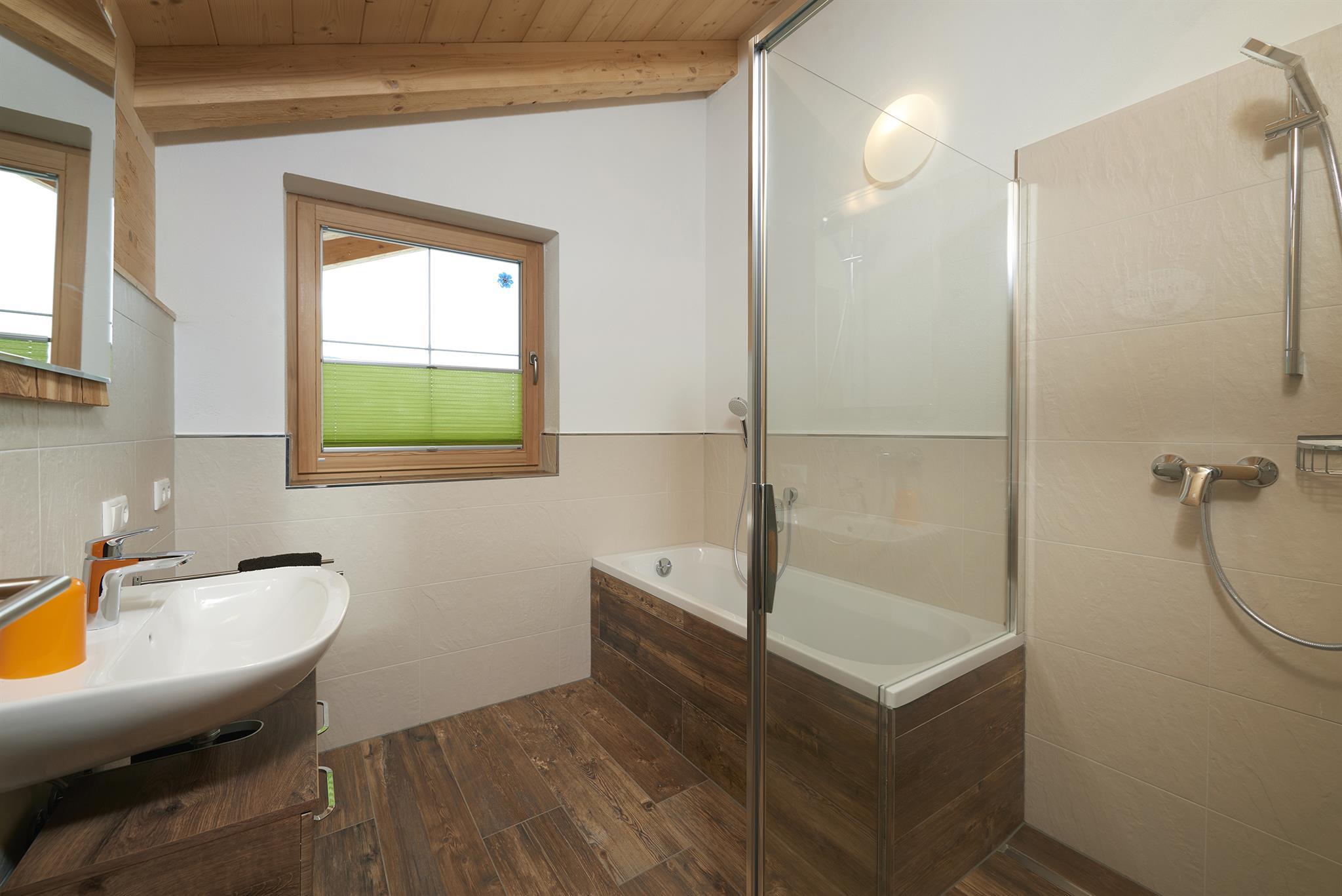 Im Badezimmer befindet sich eine Badewanne und eine Dusche. WC separat