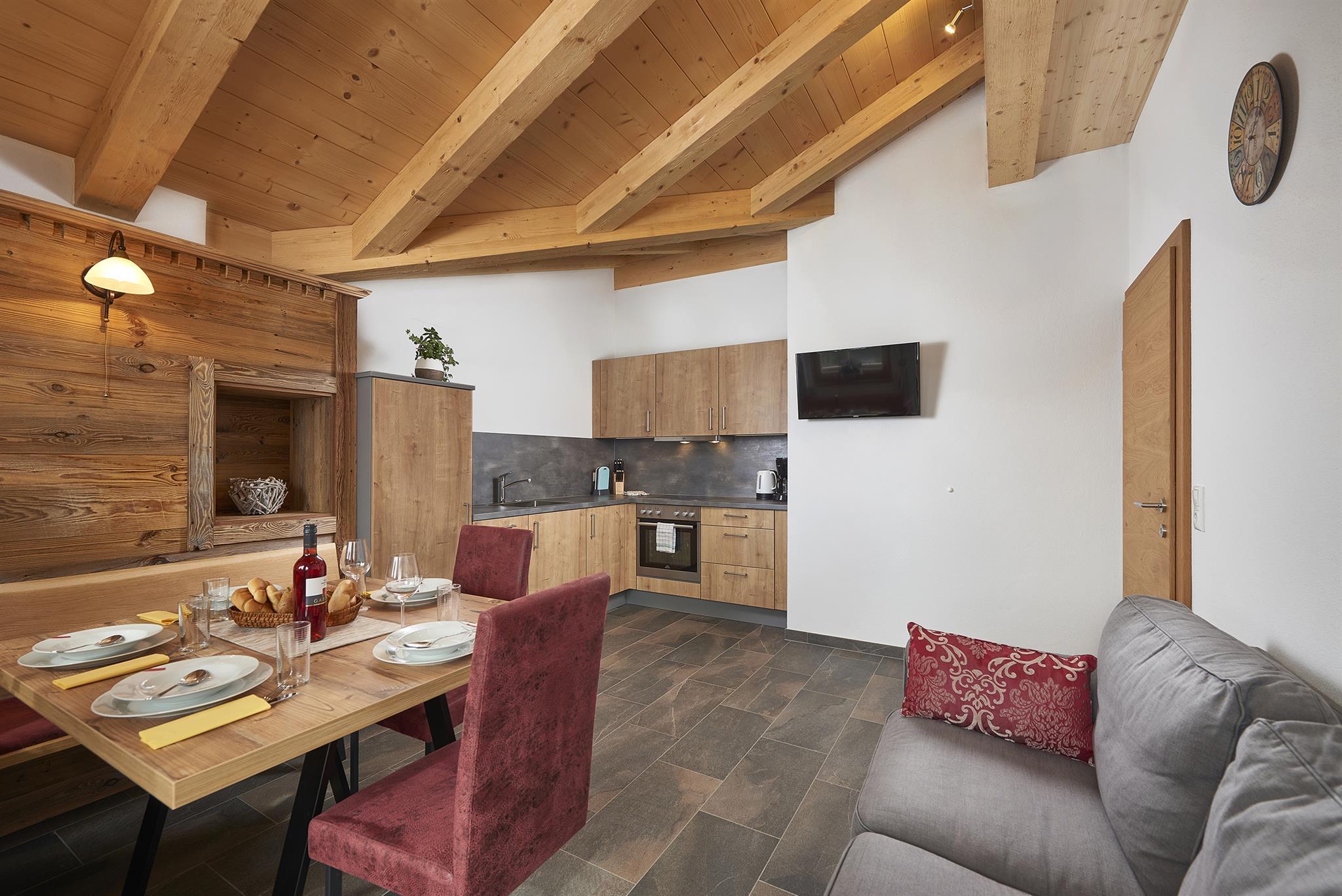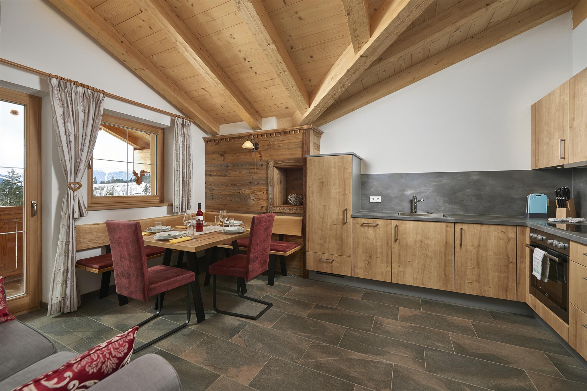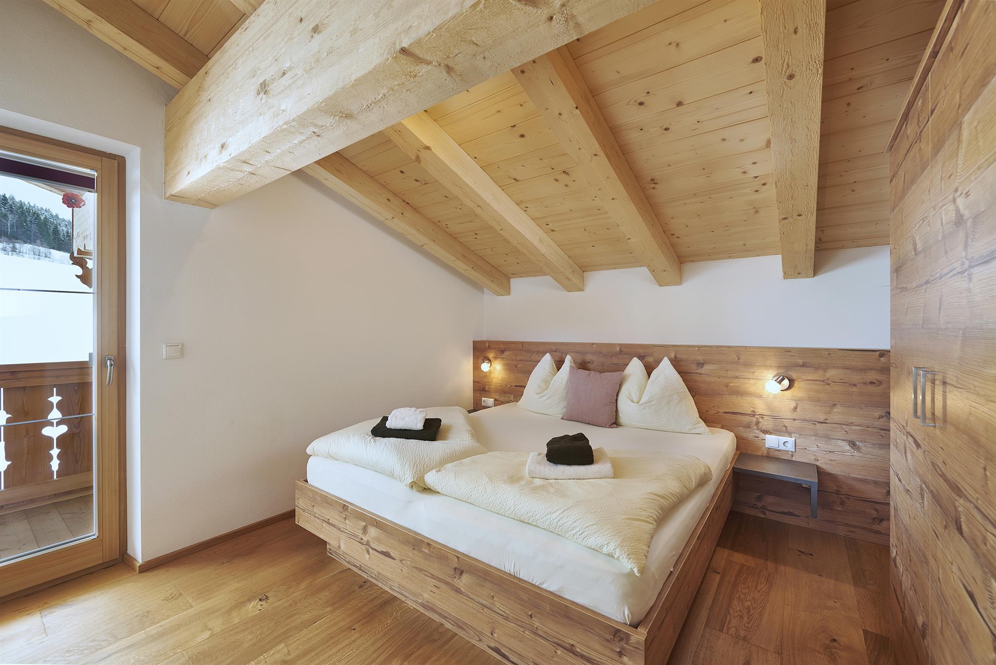 Die gemütlich und natürlich eingerichtete Ferienwohnung Rohrmoos mit Sichtdachstuhl und Balkon bietet Platz für 2-5 Personen.