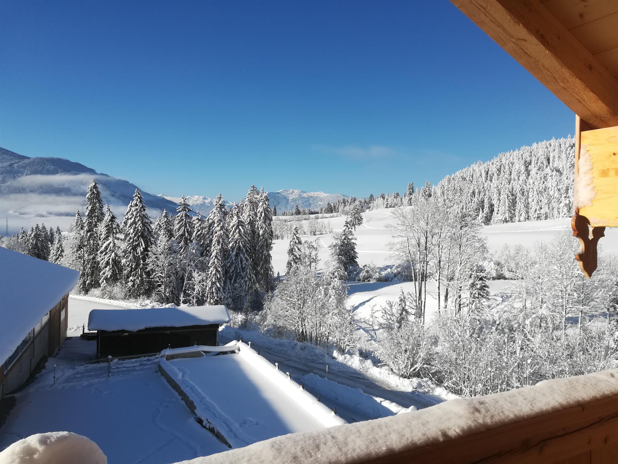 Im Winter haben wir eine kleine hauseigene Rodelbahn. Die Langlaufloipe führt direkt am Haus vorbei und der Skibus hält an unserer Hofeinfahrt.