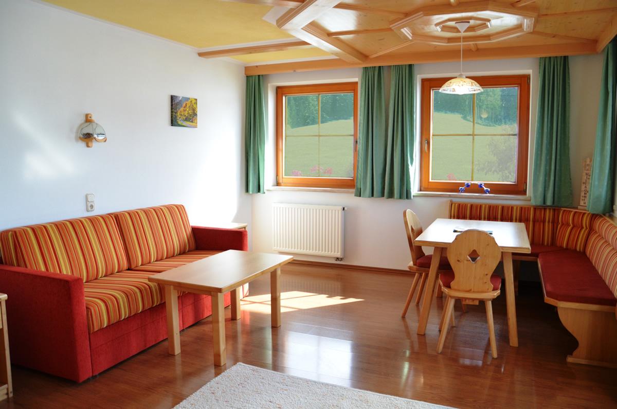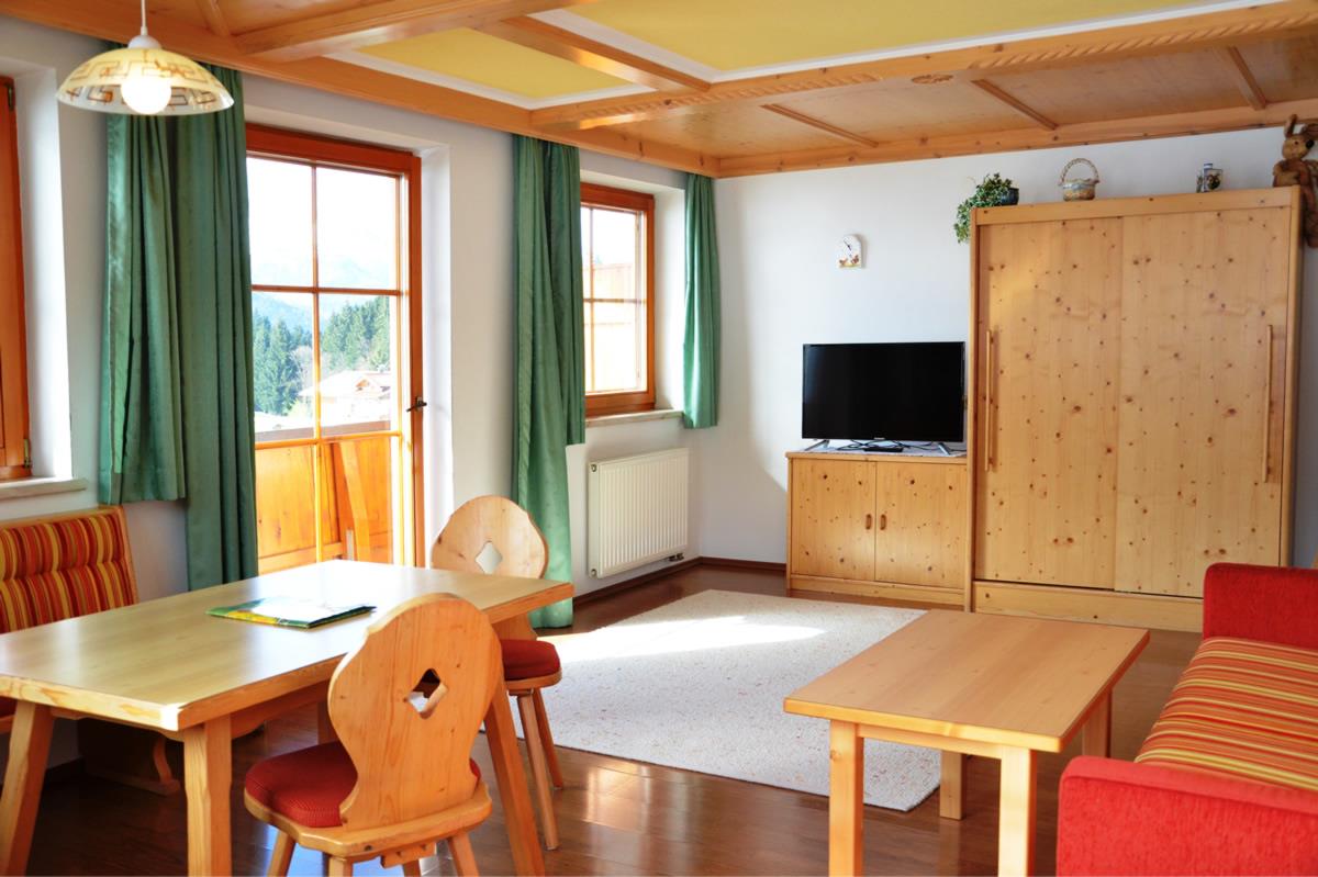 Abseits der lärmenden Straßen können Sie bei uns Ihren Urlaub in Ruhe genießen und sind doch nur 15 Gehminuten vom Dorfzentrum Schwendt und 5 km von Kössen entfernt. Sommer wie Winter ist unser Hof ein idealer Ausgangspunkt für viele Wanderungen. Die geräumigen Ferienwohnungen bieten einen herrlichen Blick auf das Kaisergebirge und haben alle einen großen Balkon.Es ist das harmonische Zusammenspiel vieler Komponenten und Gegebenheiten, die Ihnen als Gast das Gefühl geben, willkommen zu sein.