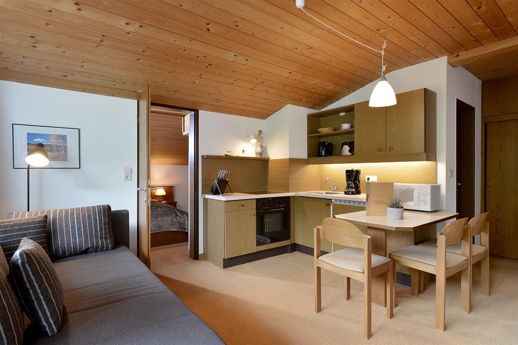 Komfortable Ferienwohnung mit Mansarden-Schlafzimmer, Wohn-Essbereich, Kochnische, Dusche/WC, Fön, Badeartikel, Balkon, TV, Telefon, W-LAN. Zimmerservice bzw. Zwischenreinigung auf Anfrage.