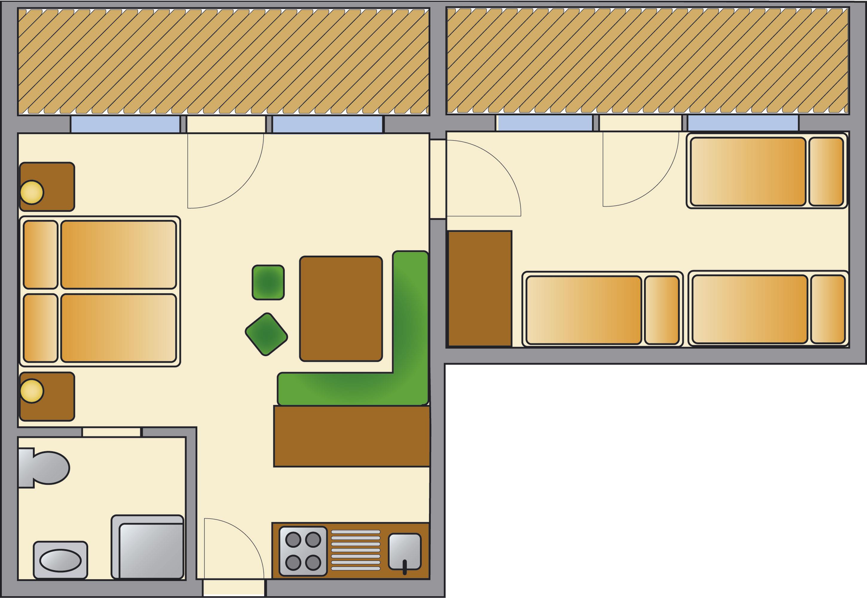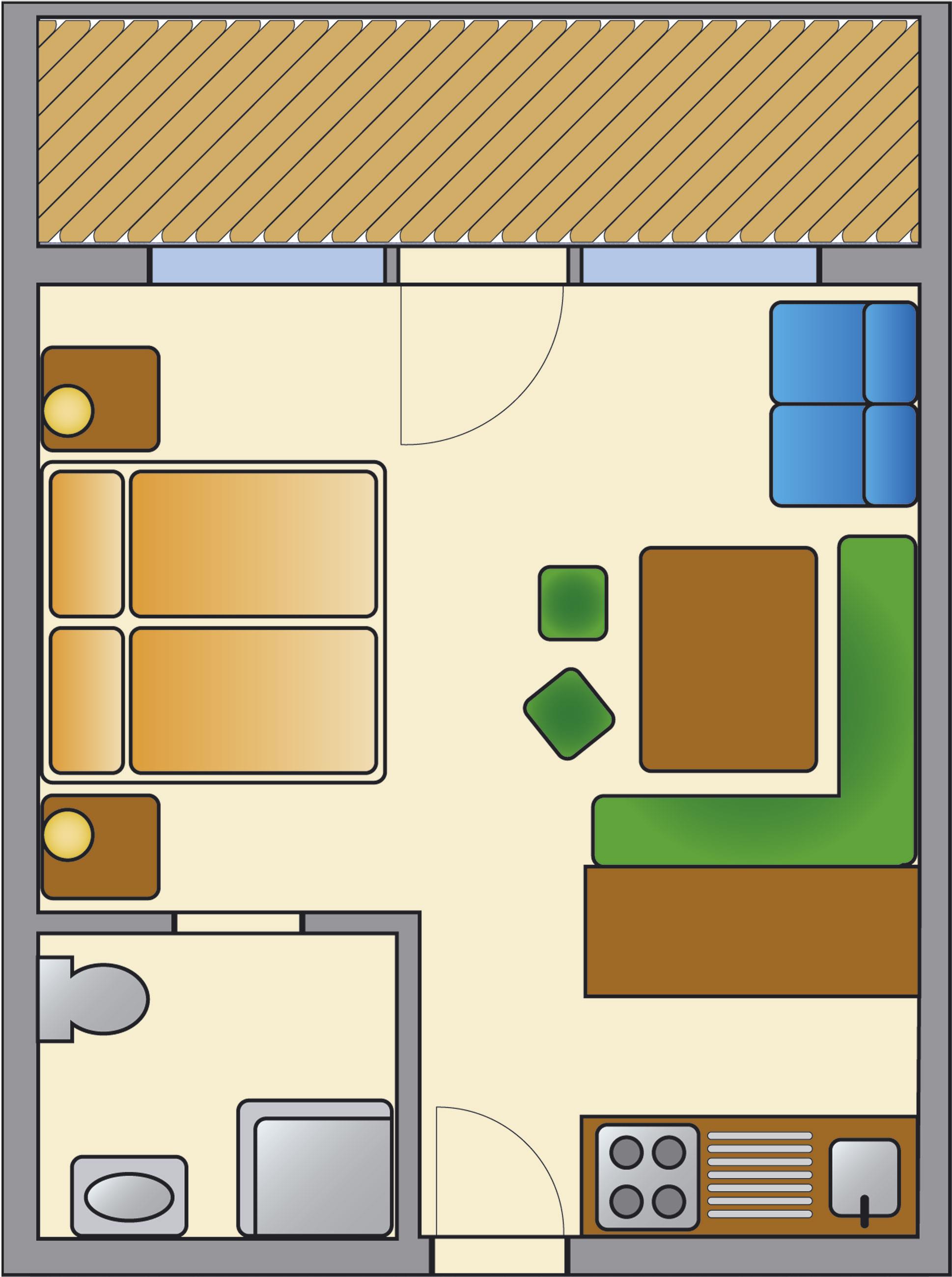 • Doppelbett, Sitzecke, Ausziehsofabett