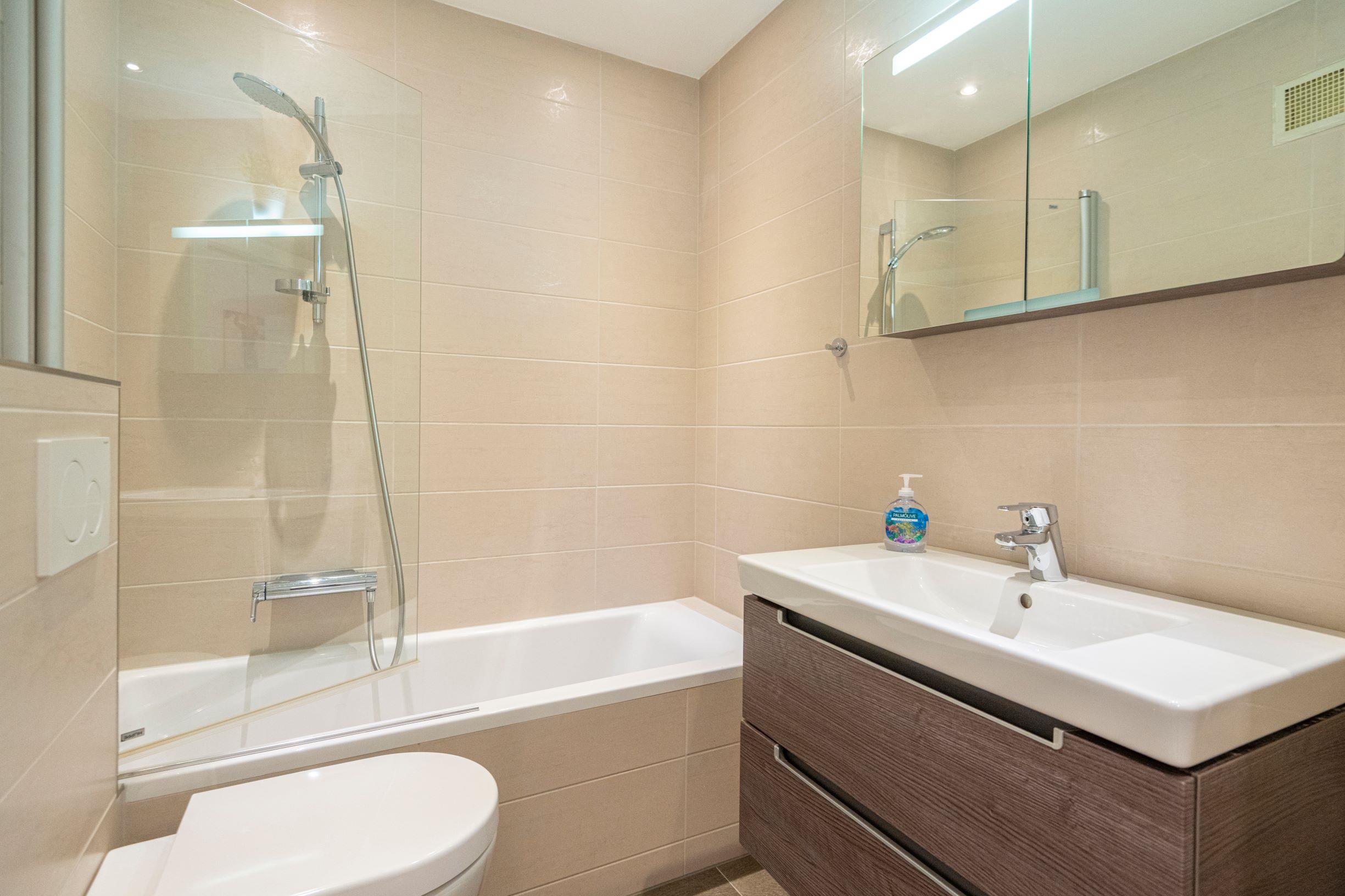 Das Apartment verfügt über 2 Schlafzimmer, 2 Badezimmer, Bettwäsche, Handtücher, einen Flachbild-Kabel-TV, einen Essbereich, eine voll ausgestattete Küche und einen Balkon mit Bergblick. Handtücher und Bettwäsche erhalten Sie gegen Aufpreis.