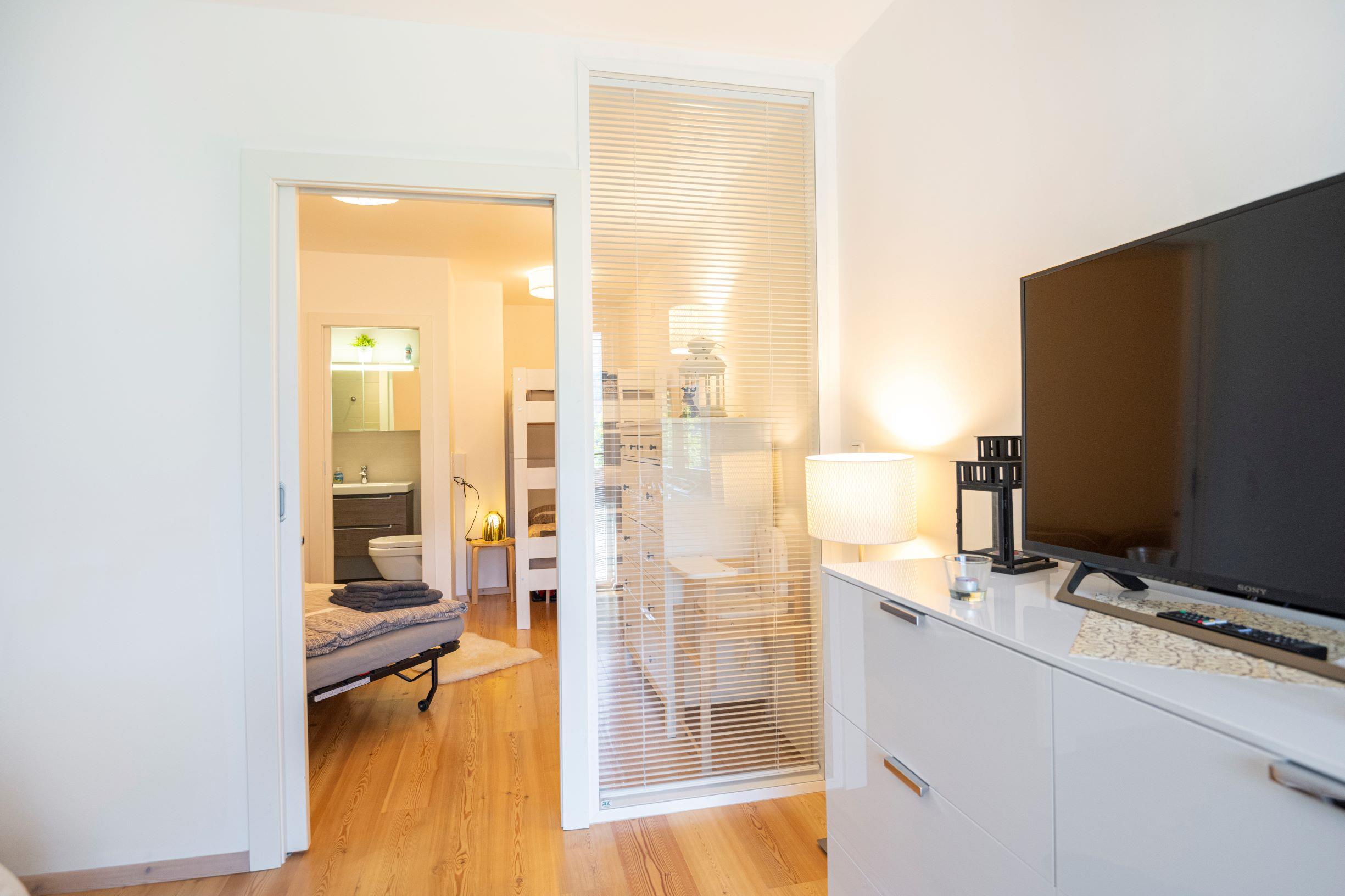 Das komplett neu renovierte Apartment liegt im 2. OG einer Wohnanlage und besteht aus zwei kleinen Schlafzimmern, zwei Badezimmern mit Bad/Dusche und WCs, einer voll ausgestatteten Küche mit Esstisch, einem hellen Wohnzimmer sowie einem Balkon mit Sitzgelegenheit. W-Lan und SAT-TV sind inkludiert. Vom hellen Wohnzimmer aus können Gäste eine schöne Aussicht auf die Gasteiner Bergwelt/den Graukogel genießen. Die moderne Küchenzeile ist komplett ausgestattet mit Induktionsherd, Mikrowelle/Backofen, Geschirrspüler, Kühlschrank, Wasserkocher, Toaster und Kaffeemaschine (Nesspreso und French Press). Bei Ausstattung der Wohnung wurde viel Wert auf hohe Qualität und optimale Platzausnutzung gelegt. Zwei getrennte Schlafräume und zwei separate Bäder ermöglichen genügend Privatsphäre. Zwei ausziehbare Sofas und ein faltbares Gitterbett können als zusätzliche Schlafplätze genutzt werden. Dies macht die Ferienwohnung ideal für eine Familie mit Kindern, gemeinsam reisende Paare oder für eine Gruppe von bis zu 6 Personen. Zur Wohnanlage gehören Parkplätze vor dem Haus, eine Waschküche mit Waschmaschine und Trockner, ein Fahrradraum, ein Lift sowie ein Skiraum mit Schuhheizung.