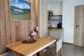 ... zuhause in den Bergen ... Die Studio Lodge Maiskogel befindet sich im Erdgeschoss unseres Neubaus. Auf ca. 30 m² ist Platz für 2 Personen. Der Wohn-/Schlafraum des Studios verfügt über eine moderne, voll ausgestattete Küchenzeile, Essbereich, Sofa und ein Badezimmer (mit Dusche/WC) sowie eine kleine Terrasse. Die Einrichtung im eleganten, alpenländischen Ambiente strahlt österreichische Gemütlichkeit aus. Wir haben großen Wert auf regionale, natürliche Einrichtungsmaterialien gesetzt. Naturoberflächen aus Heu, Blumen und Holz erzeugen ein angenehmes Wohnklima. Natürlich ist das Appartement mit Flat-TV ausgestattet. WIFI, Parkplatz, Handtücher und Bettwäsche sind inklusive. Die Lage ist ruhig und zentral.