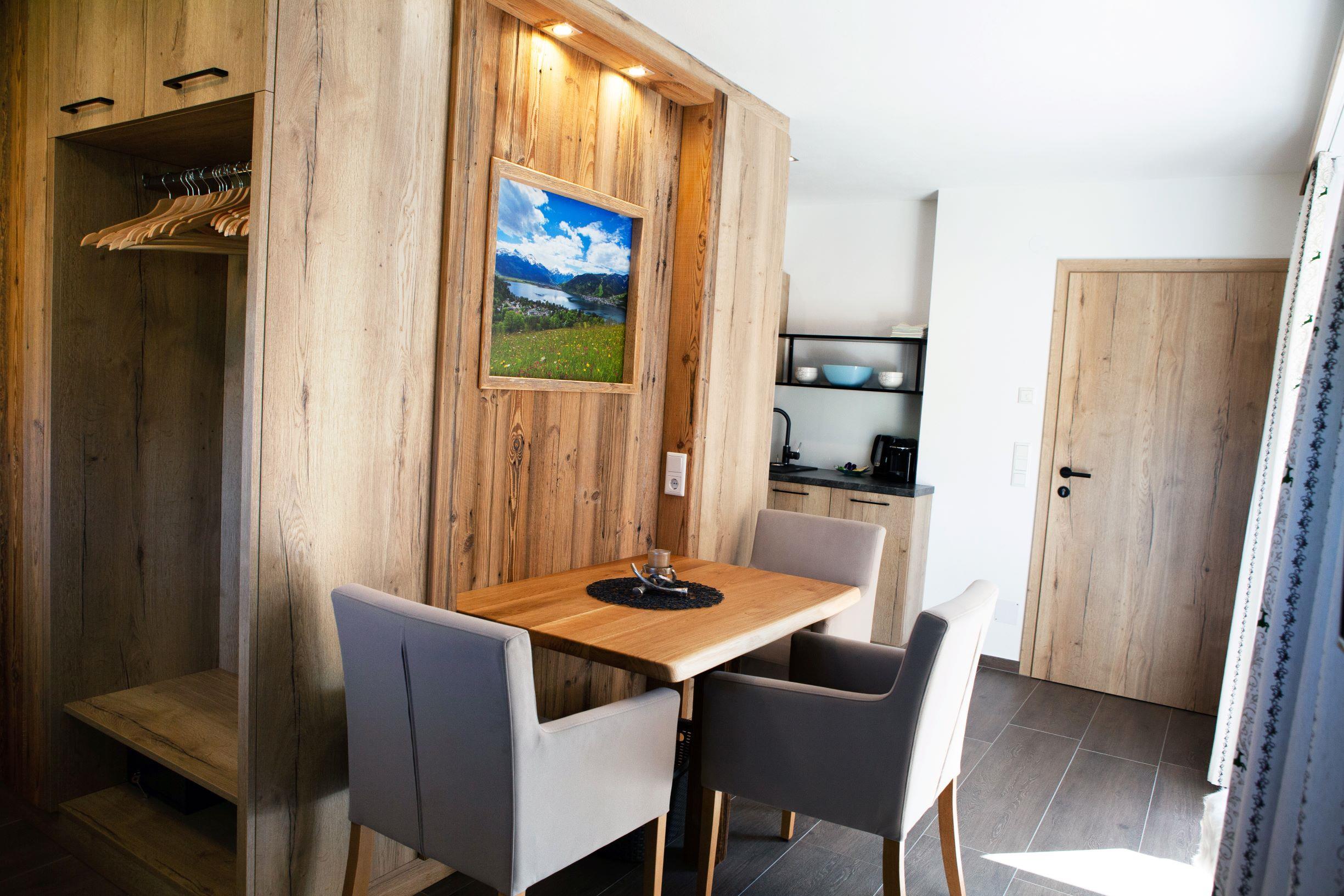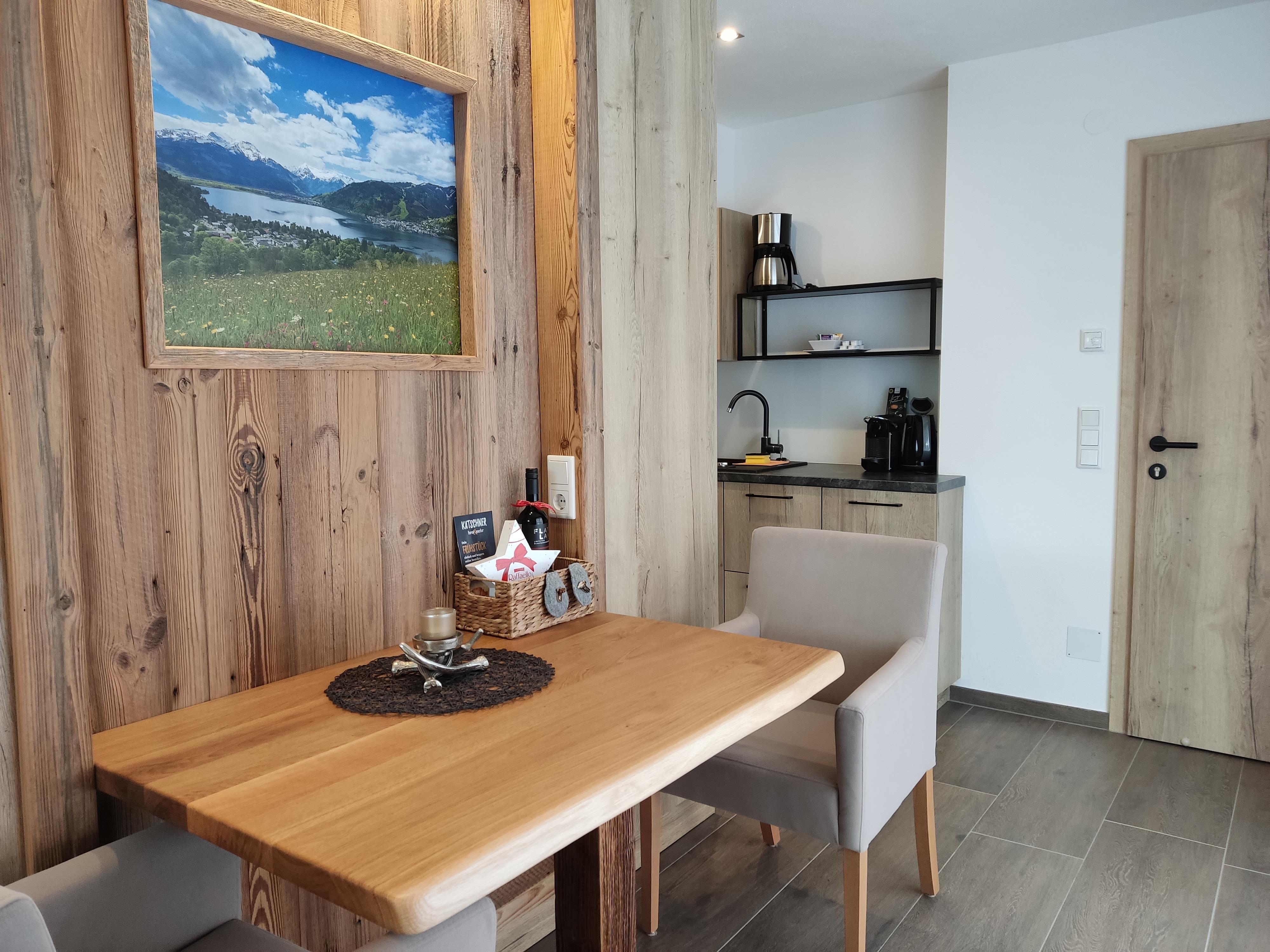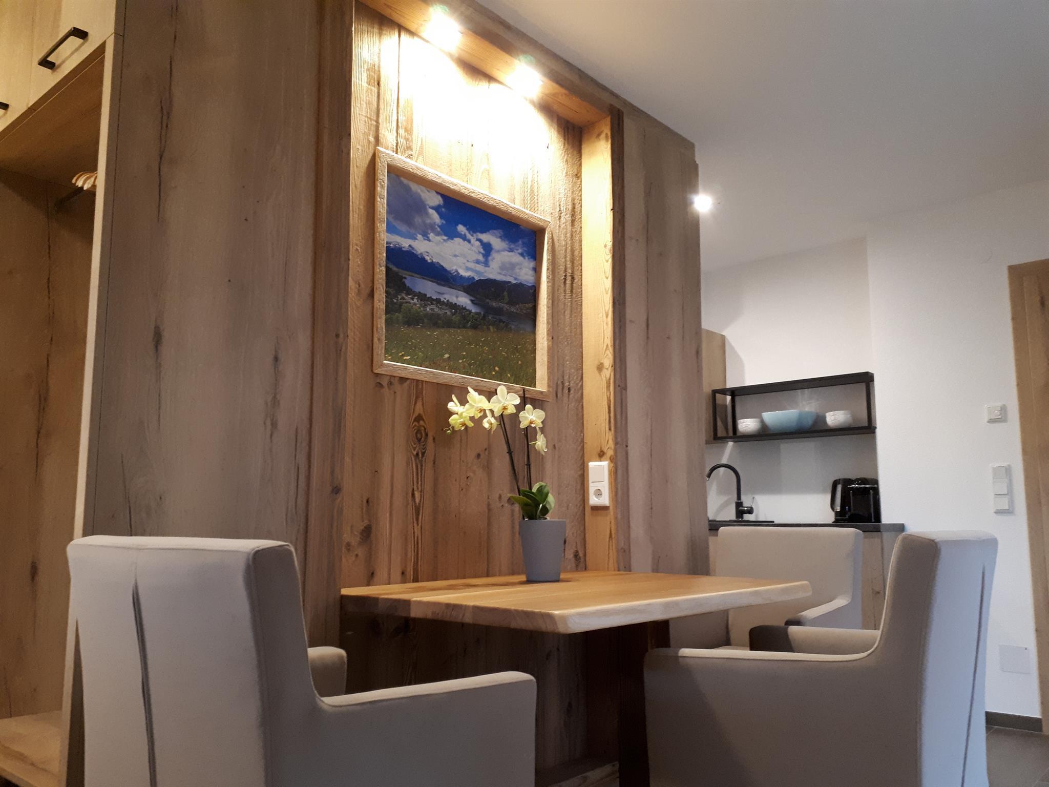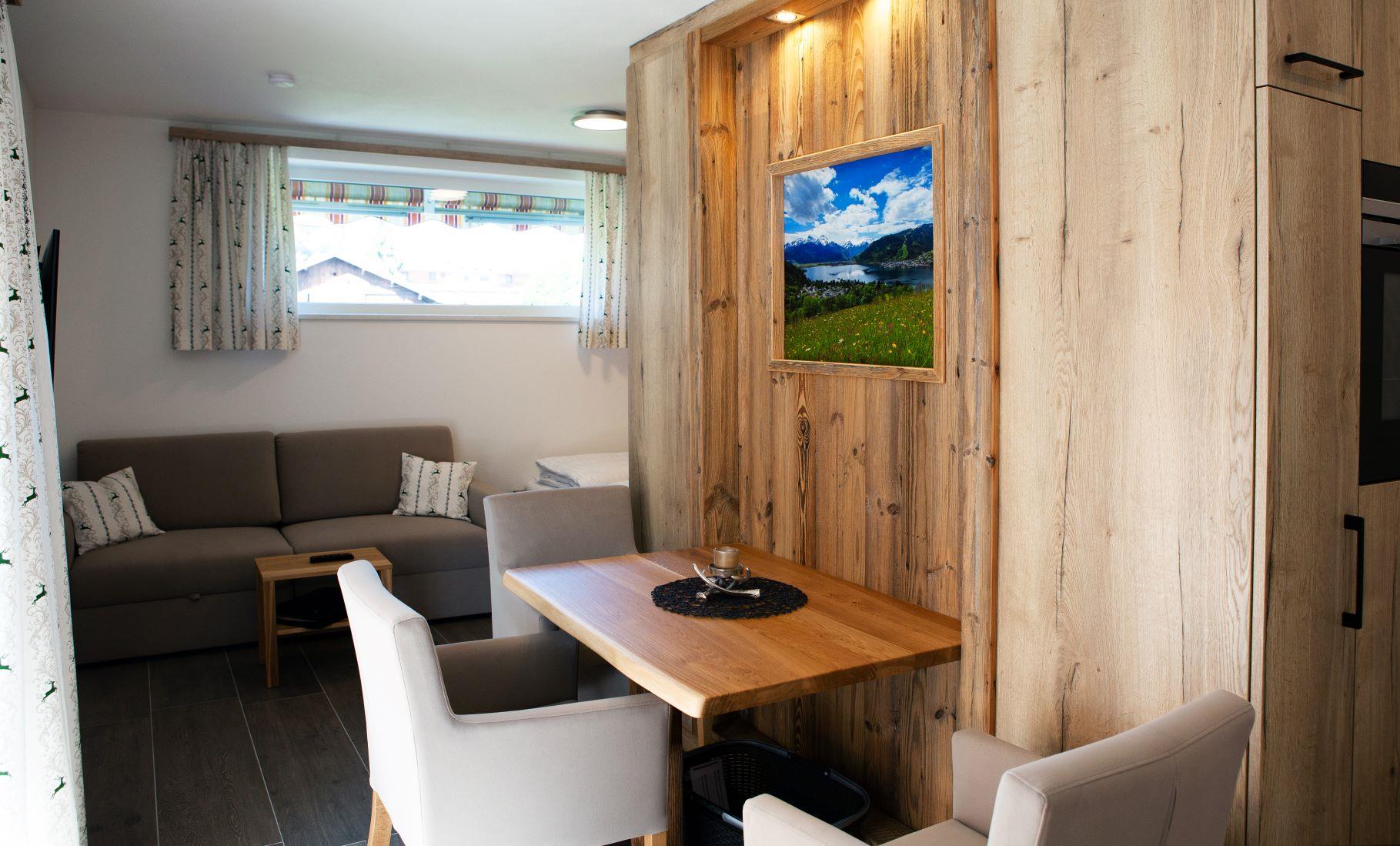 ... zuhause in den Bergen ... Die Studio Lodge Maiskogel befindet sich im Erdgeschoss unseres Neubaus. Auf ca. 30 m² ist Platz für 2 Personen. Der Wohn-/Schlafraum des Studios verfügt über eine moderne, voll ausgestattete Küchenzeile, Essbereich, Sofa und ein Badezimmer (mit Dusche/WC) sowie eine kleine Terrasse. Die Einrichtung im eleganten, alpenländischen Ambiente strahlt österreichische Gemütlichkeit aus. Wir haben großen Wert auf regionale, natürliche Einrichtungsmaterialien gesetzt. Naturoberflächen aus Heu, Blumen und Holz erzeugen ein angenehmes Wohnklima. Natürlich ist das Appartement mit Flat-TV ausgestattet. WIFI, Parkplatz, Handtücher und Bettwäsche sind inklusive. Die Lage ist ruhig und zentral.