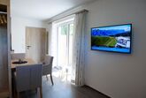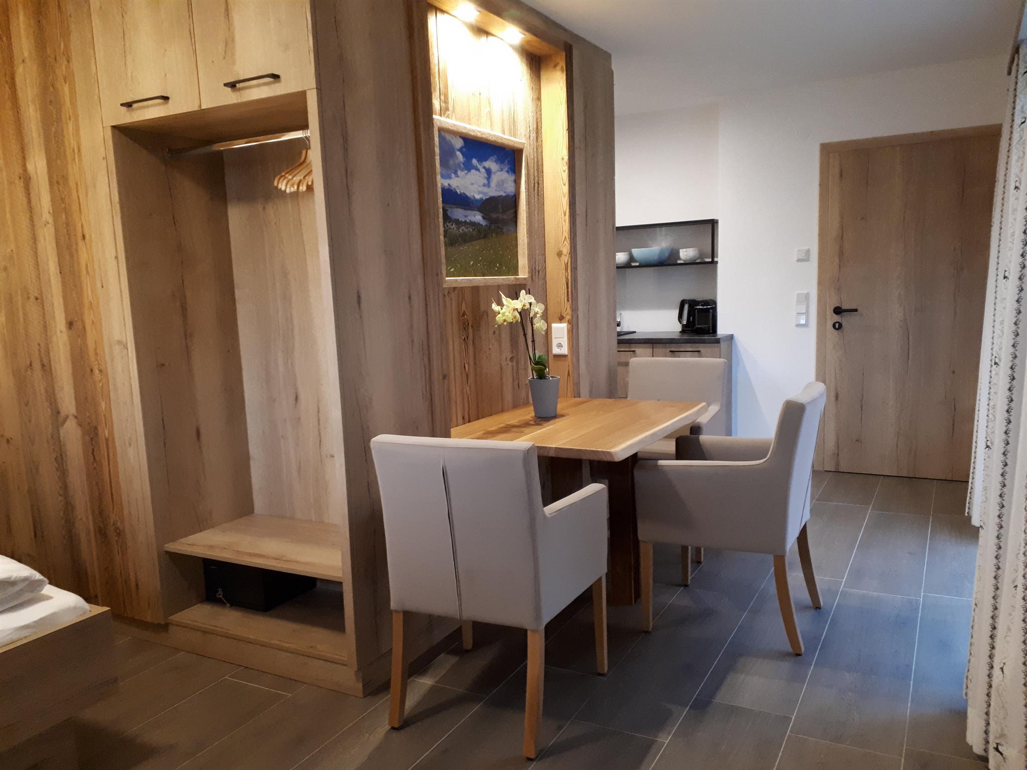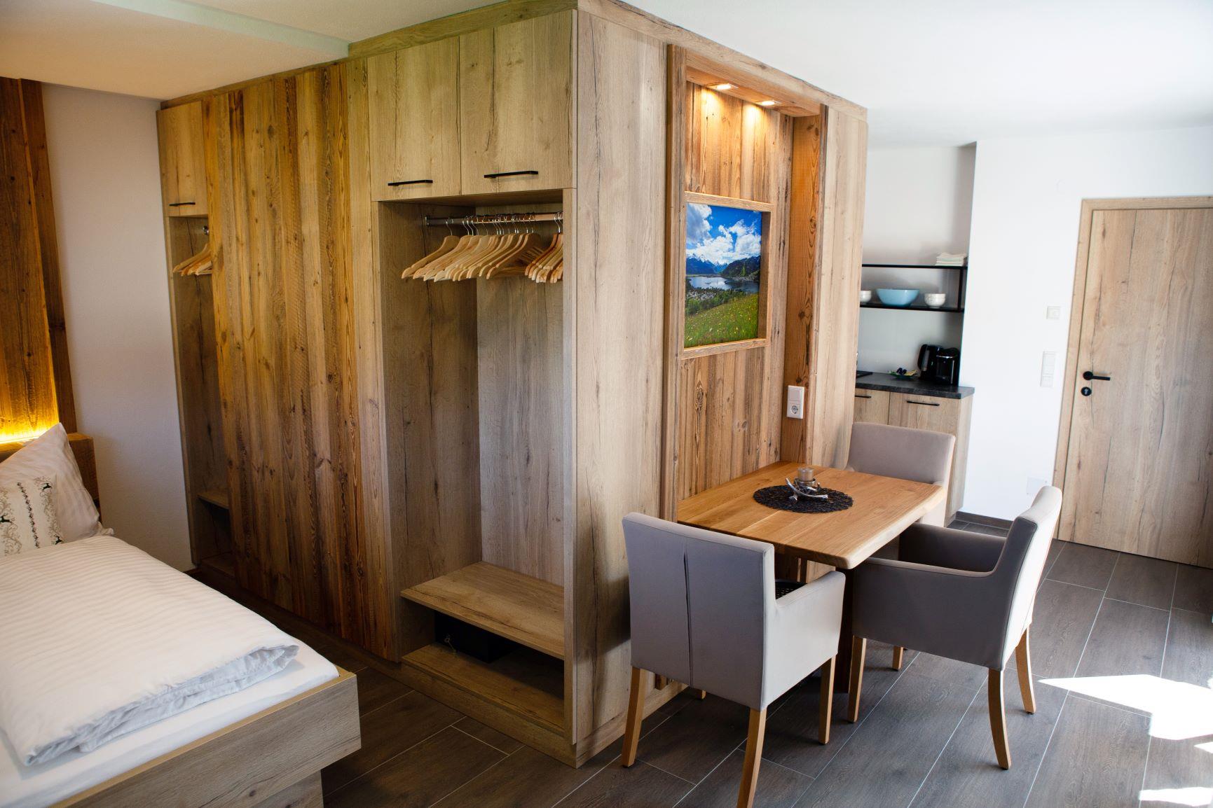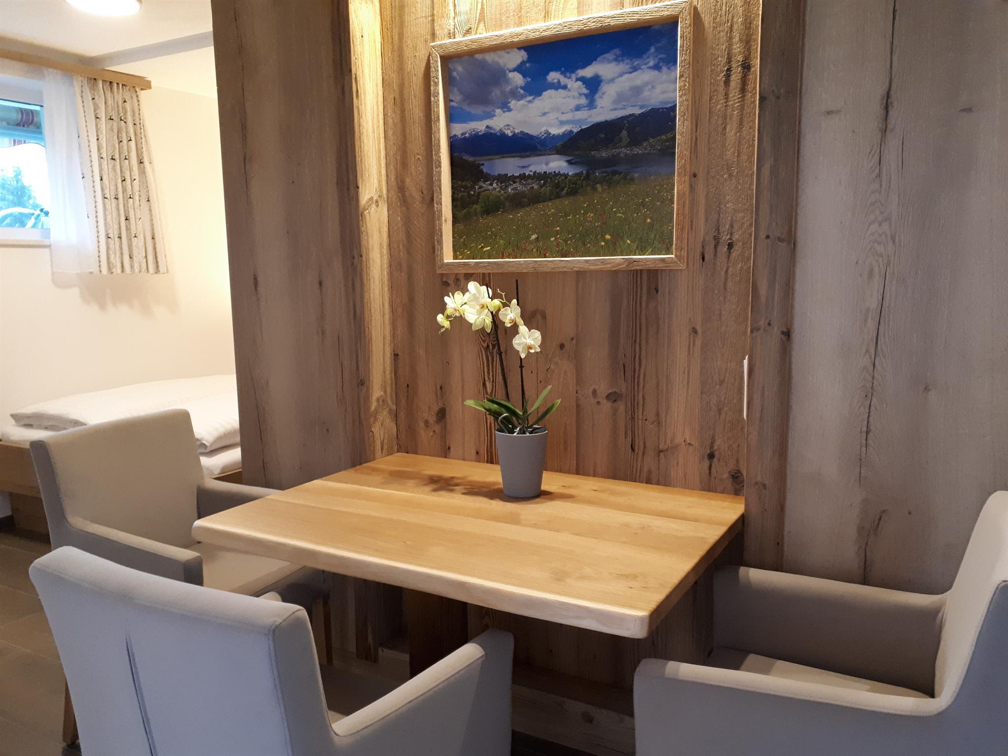 ... zuhause in den Bergen ... Die Studio Lodge Maiskogel befindet sich im Erdgeschoss unseres Neubaus. Auf ca. 30 m² ist Platz für 2 Personen. Der Wohn-/Schlafraum des Studios verfügt über eine moderne, voll ausgestattete Küchenzeile, Essbereich, Sofa und ein Badezimmer (mit Dusche/WC) sowie eine kleine Terrasse. Die Einrichtung im eleganten, alpenländischen Ambiente strahlt österreichische Gemütlichkeit aus. Wir haben großen Wert auf regionale, natürliche Einrichtungsmaterialien gesetzt. Naturoberflächen aus Heu, Blumen und Holz erzeugen ein angenehmes Wohnklima. Natürlich ist das Appartement mit Flat-TV ausgestattet. WIFI, Parkplatz, Handtücher und Bettwäsche sind inklusive. Die Lage ist ruhig und zentral.