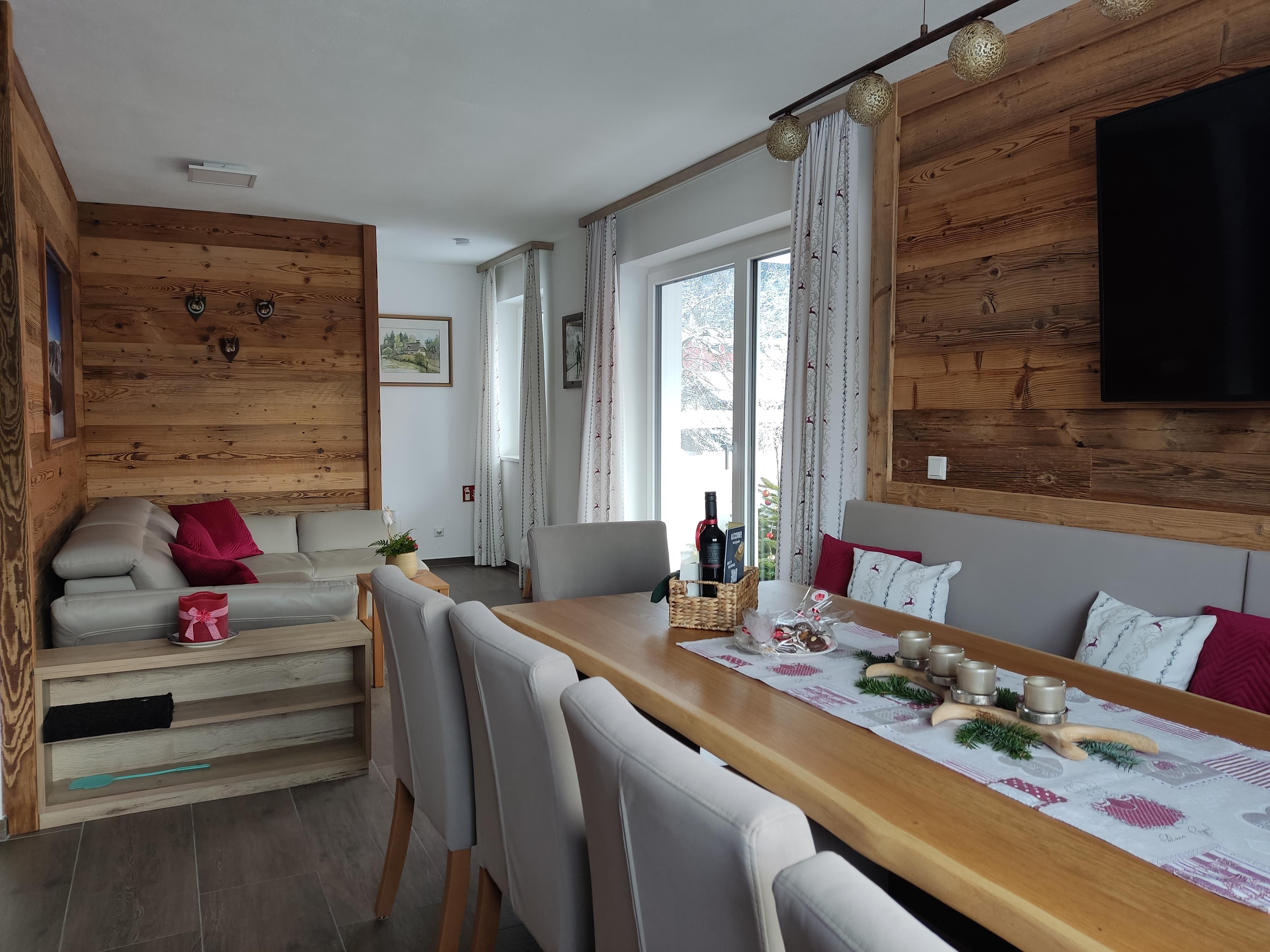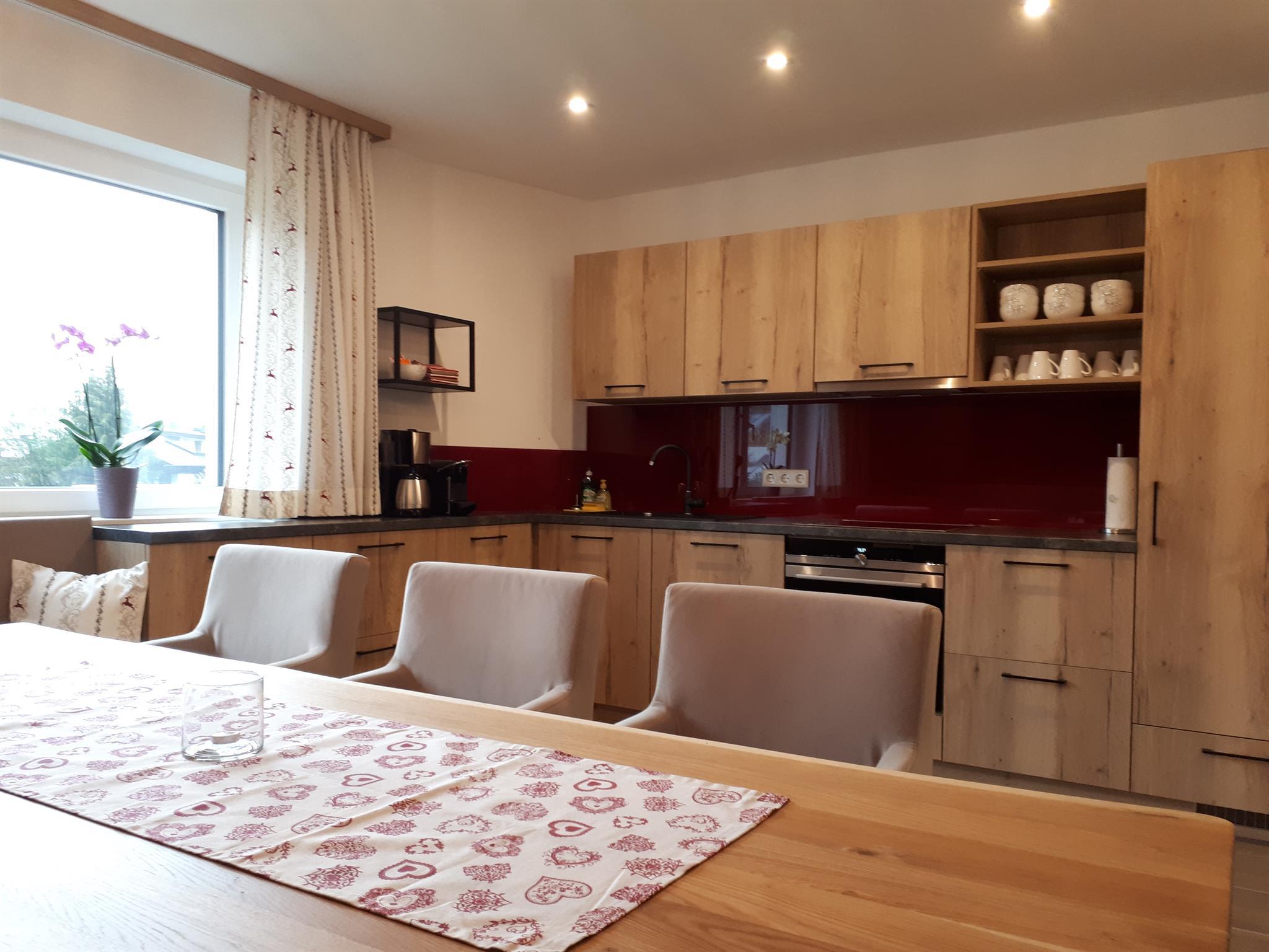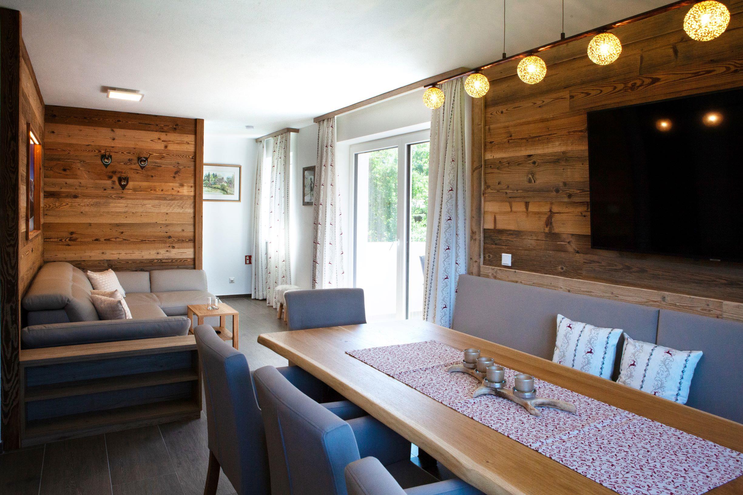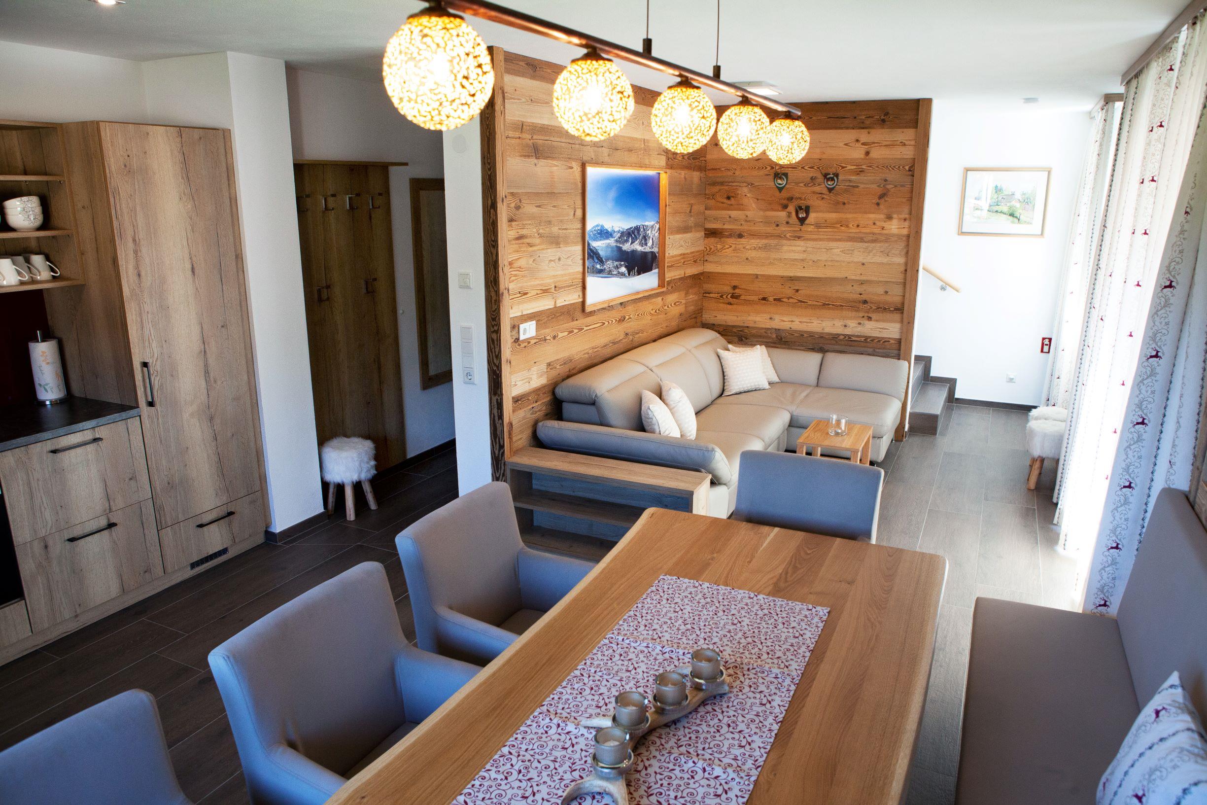 ... zuhause in den Bergen ... Die Panorama Lodge Kitzsteinhorn erstreckt sich über zwei Etagen im 1. Stock und Dachgeschoss unseres Neubaus. Auf ca. 95 m² finden bis zu 8 Personen bequem Platz. Im 1. Stock befindet sich eine geräumige, moderne, voll ausgestattete Wohnküche mit Balkon; im Dachgeschoss 3 Schlafzimmer (2 Doppel-, ein 4-Bettzimmer), 2 Badezimmer sowie ein weiterer Balkon. Die Einrichtung im eleganten, alpenländischen Ambiente strahlt österreichische Gemütlichkeit aus. Wir haben großen Wert auf regionale, natürliche Einrichtungsmaterialien gesetzt, die ein angenehmes Wohnklima erzeugen. Alle Zimmer sind mit Flat-TV ausgestattet. Parkplatz und WiFi, Handtücher und Bettwäsche sind inklusive.