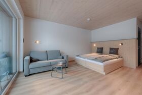 1 Zimmer Apartments für 2 Personen; eine 3. Person oder Kinder ab 14 Jahren finden auch noch auf der großen Schlafcouch Platz.