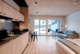 Unsere großzügigen 1 Zimmer Apartments punkten mit trennbaren Doppelbett, gratis WLAN, neueste Technologie (elektronischem Zutrittssystem, mobiler Handy Schlüssel), großen Terrassen oder Balkonen und einem besonders angenehmen Raumklima durch den kompletten Massivholzbau.