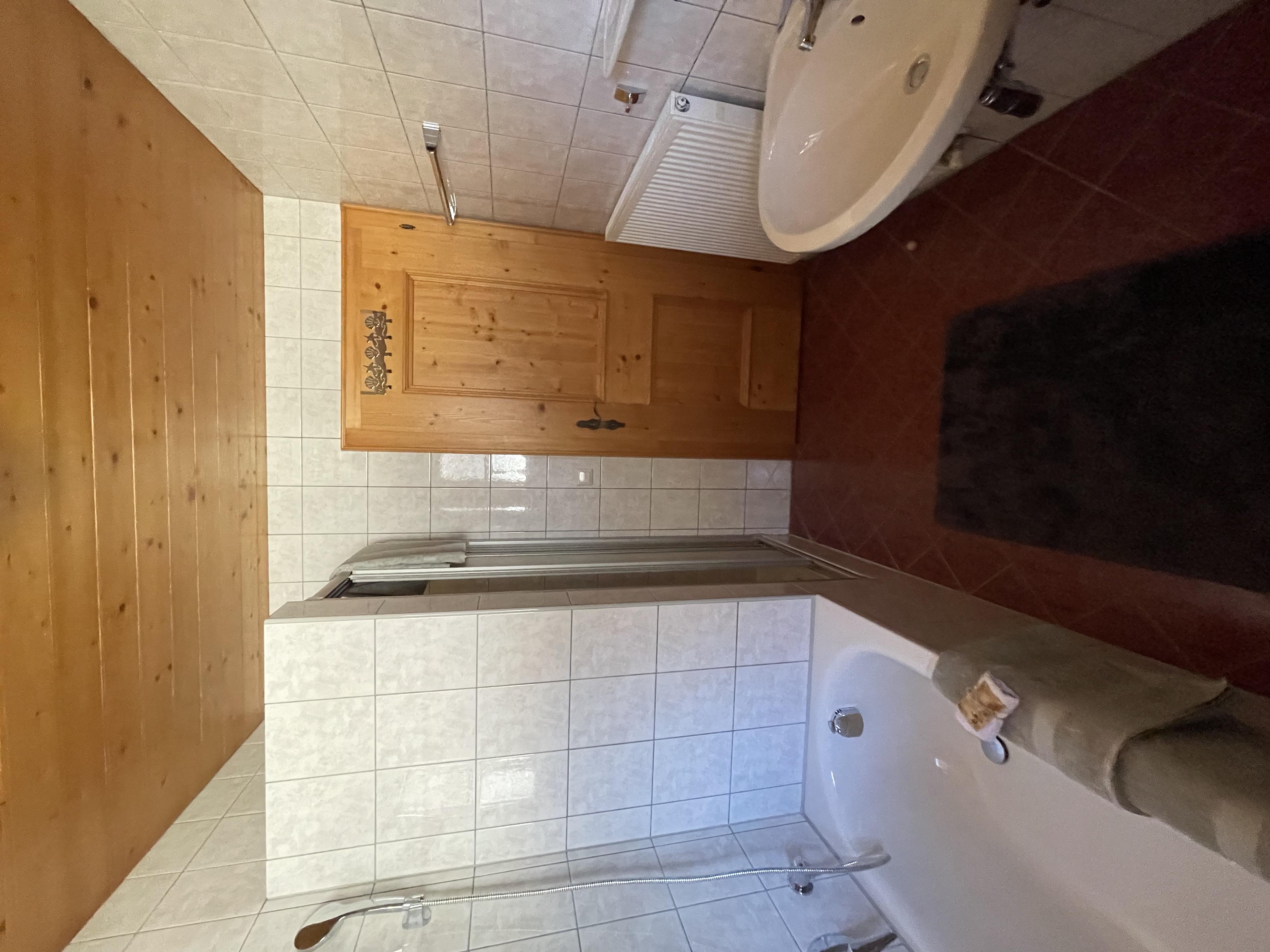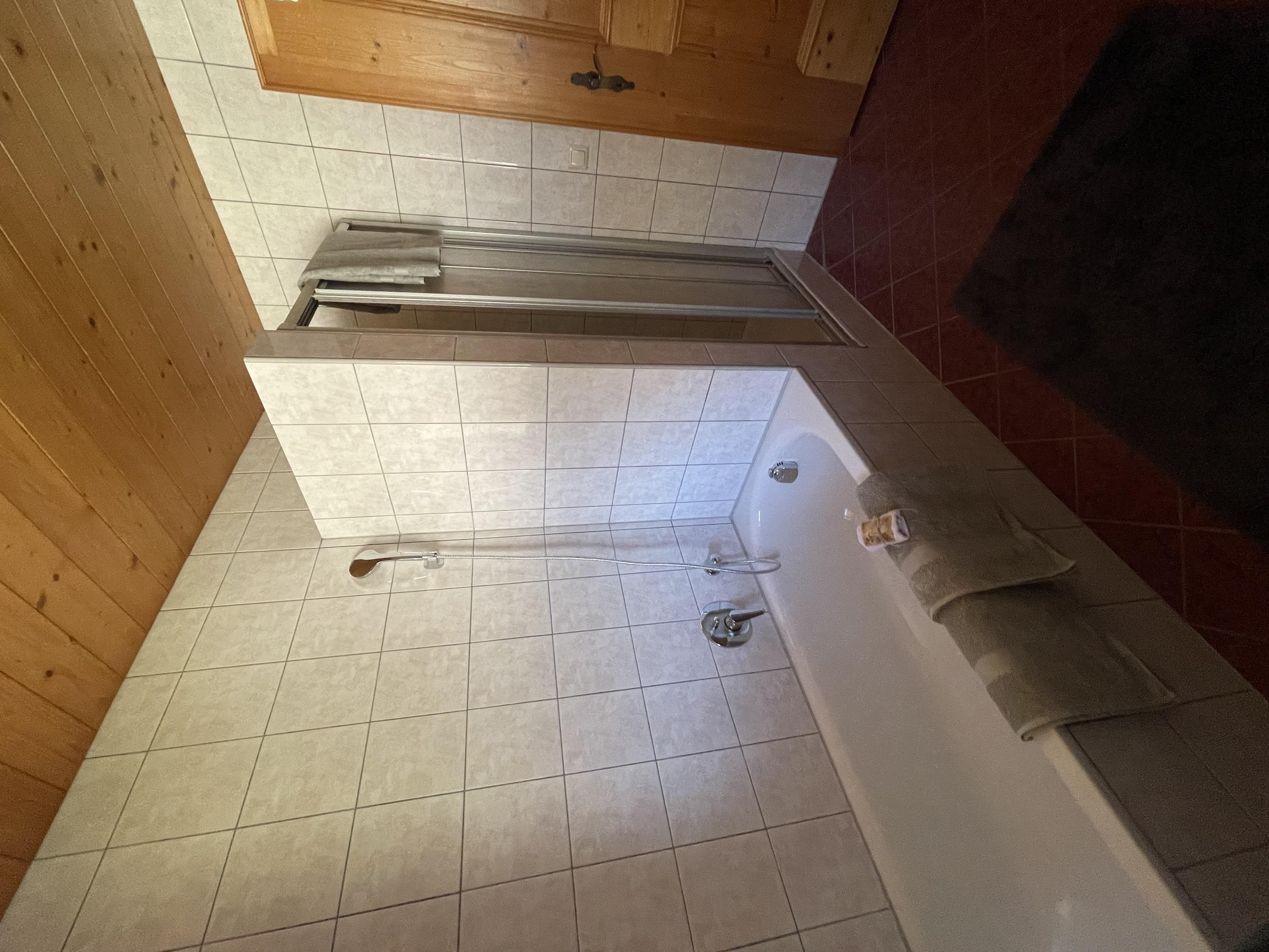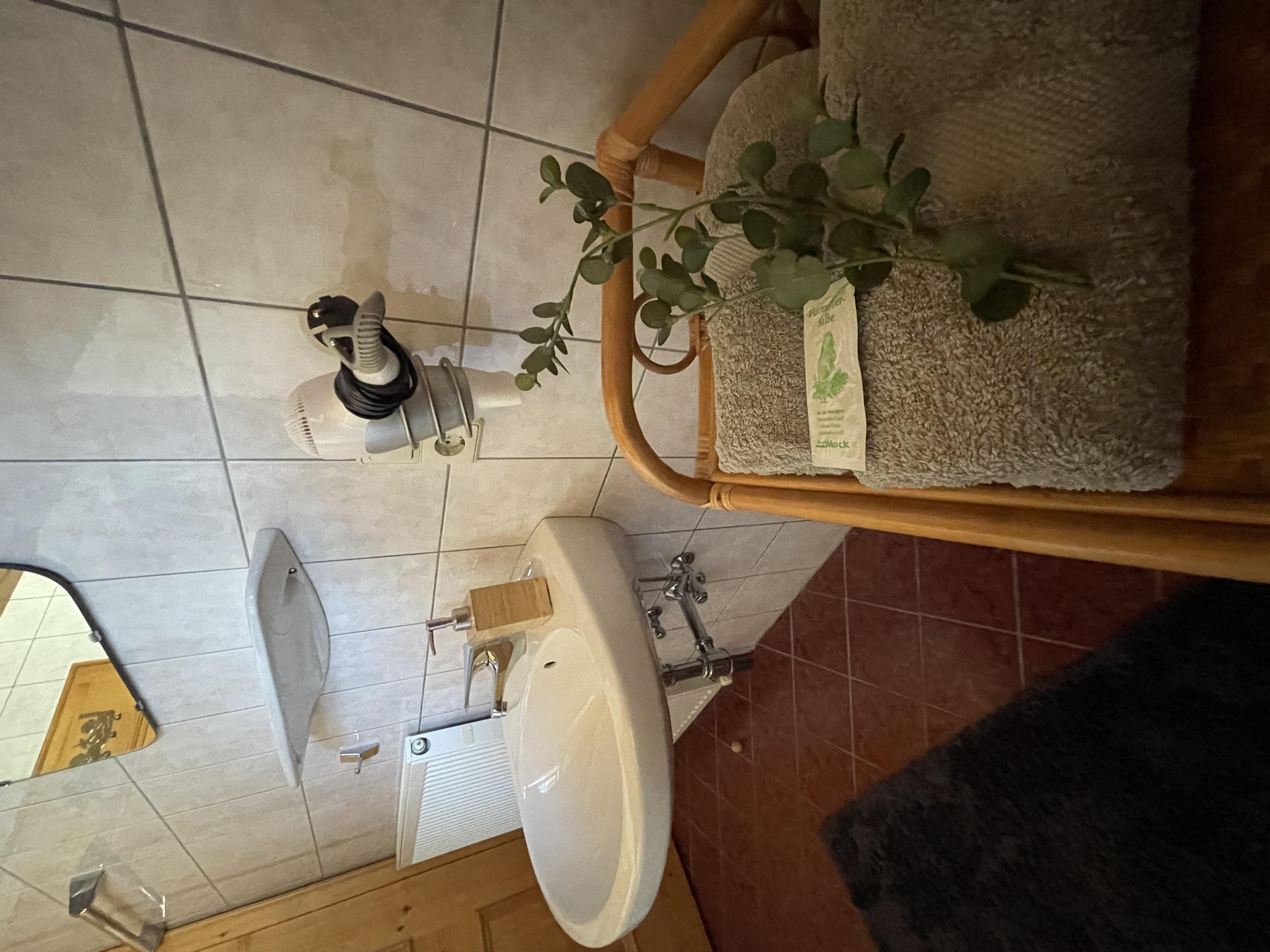 Unser Doppelzimmer und Dreibettzimmer sind gemütlich eingerichtet, das Badezimmer ist ausgestattet mit einer Dusche, eigener Badewanne und nebenan seperates WC. Allergiker Wohnung nur Fliesen und Parkett!