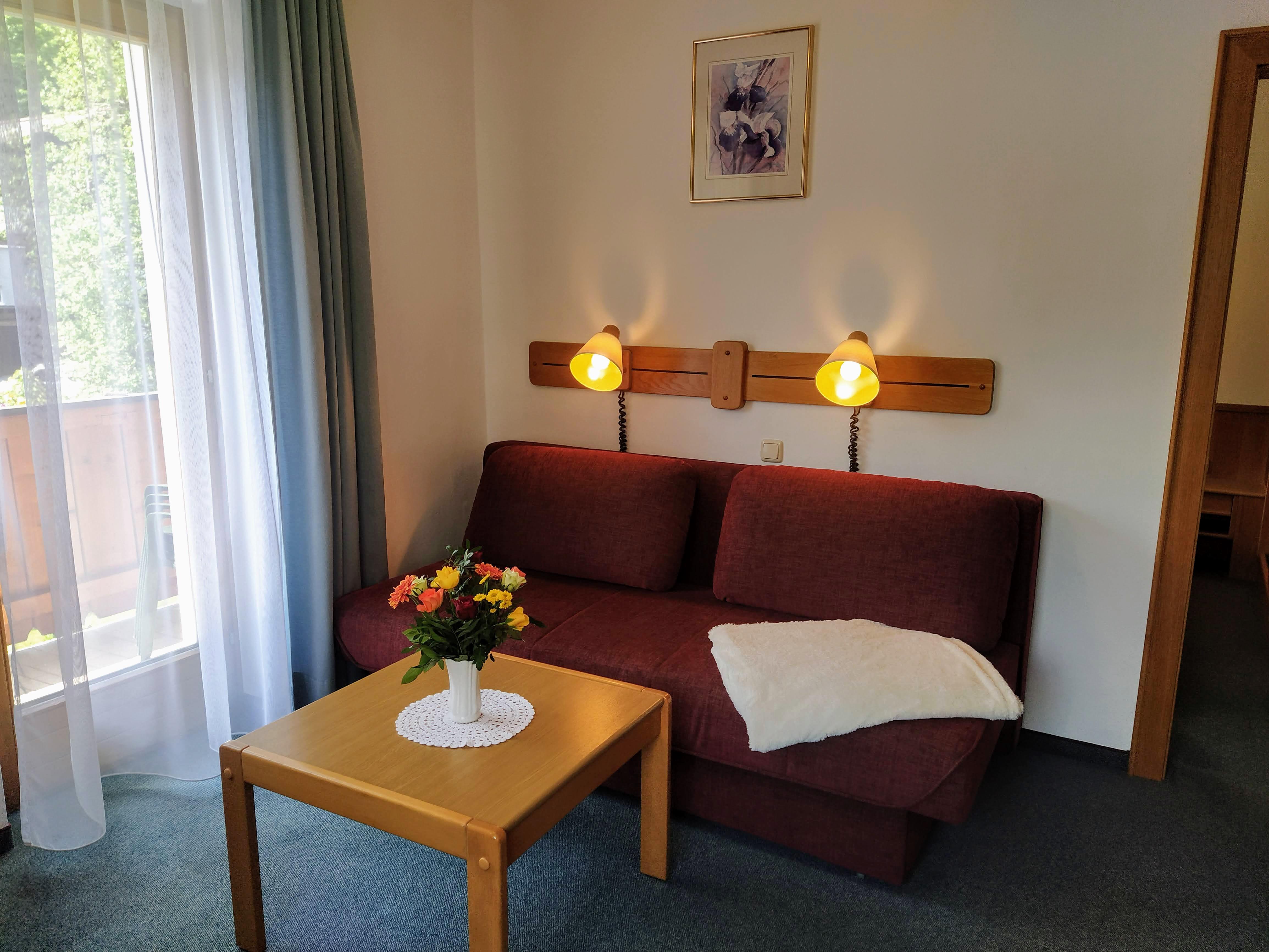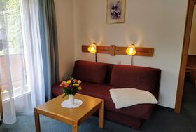 Appt f. 2-4 Personen bestehend aus einem Zimmer mit Doppelbett, einem Wohn/Schlafraum m. Ausziehcouch, Eßplatz, Kabel-TV (Flat Screen), WLAN, Balkon südseitig, abgetrennte Küchenzeile, Dusche/WC. Preisred. a. Anfrage b. geringerer Personenzahl