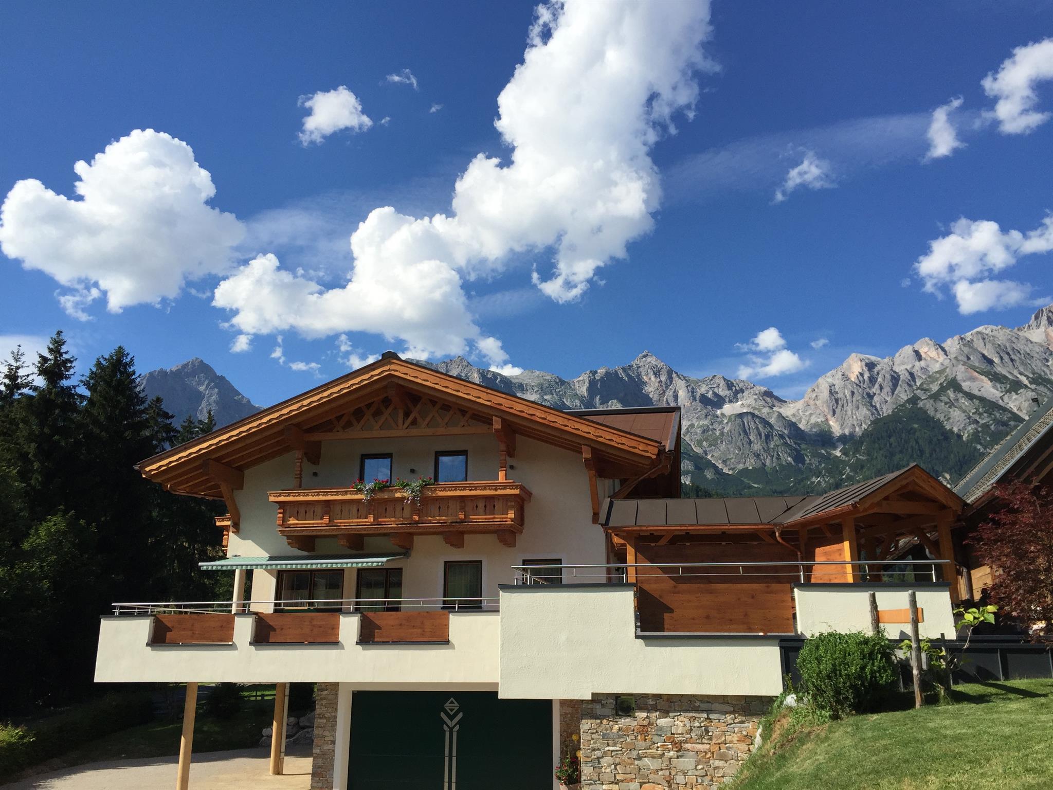 Ein neu erbautes Chalet mit 4 getrennten Zimmern jeweils DU/WC, Großer Wohnraum, Küche, Sauna, große Sonnenterrasse, Carports, WLAN, Griller, Liegewiese, Kachelofen,