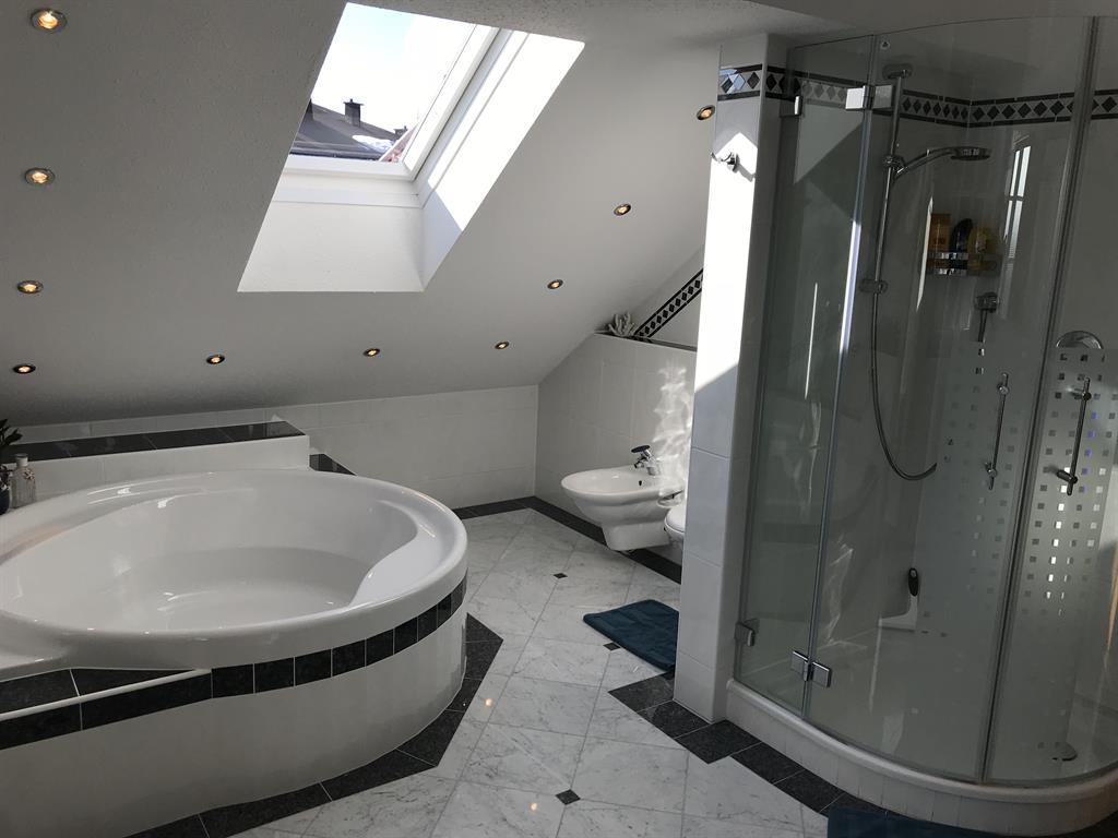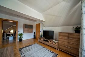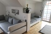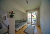 Großzügige FeWo (83 m²): 1 Schlafzimmer; 1 Wohn-Schlafzimmer mit Flat-TV und extra Schlafsofa für 2 Personen; vollausgestattete Küche mit Geschirrspüler und Essbereich; Badezimmer mit Dusche, Badewanne, WC und Bidet; Loggia; 1 Balkon