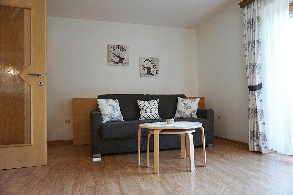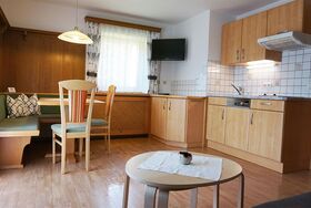 Dieses Appartement besteht aus einer Wohnküche mit Esstisch und Couch, Küchenzeile (voll ausgestattet), 1 kleines Schlafzimmer mit 2 Einzelbetten auch zum zusammenschieben, Dusche und WC. TV und CD-Player mit Radio und Haarföhn sind vorhanden. Der Balkon ist südseitig mit wunderschönen Ausblick auf die Gasteiner Bergwelt. Bettwäsche, Bade-und Handtücher sowie Geschirrtücher sind vorhanden. W-Lananschluss ist im Haus, hier wird ein einmaliger Betrag von Euro 5,00 verrechnet. Dieses Appartement wird im Sommer, Frühjahr und im Herbst auch als Einzelbelegungen für Stollengäste vergeben