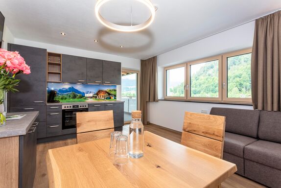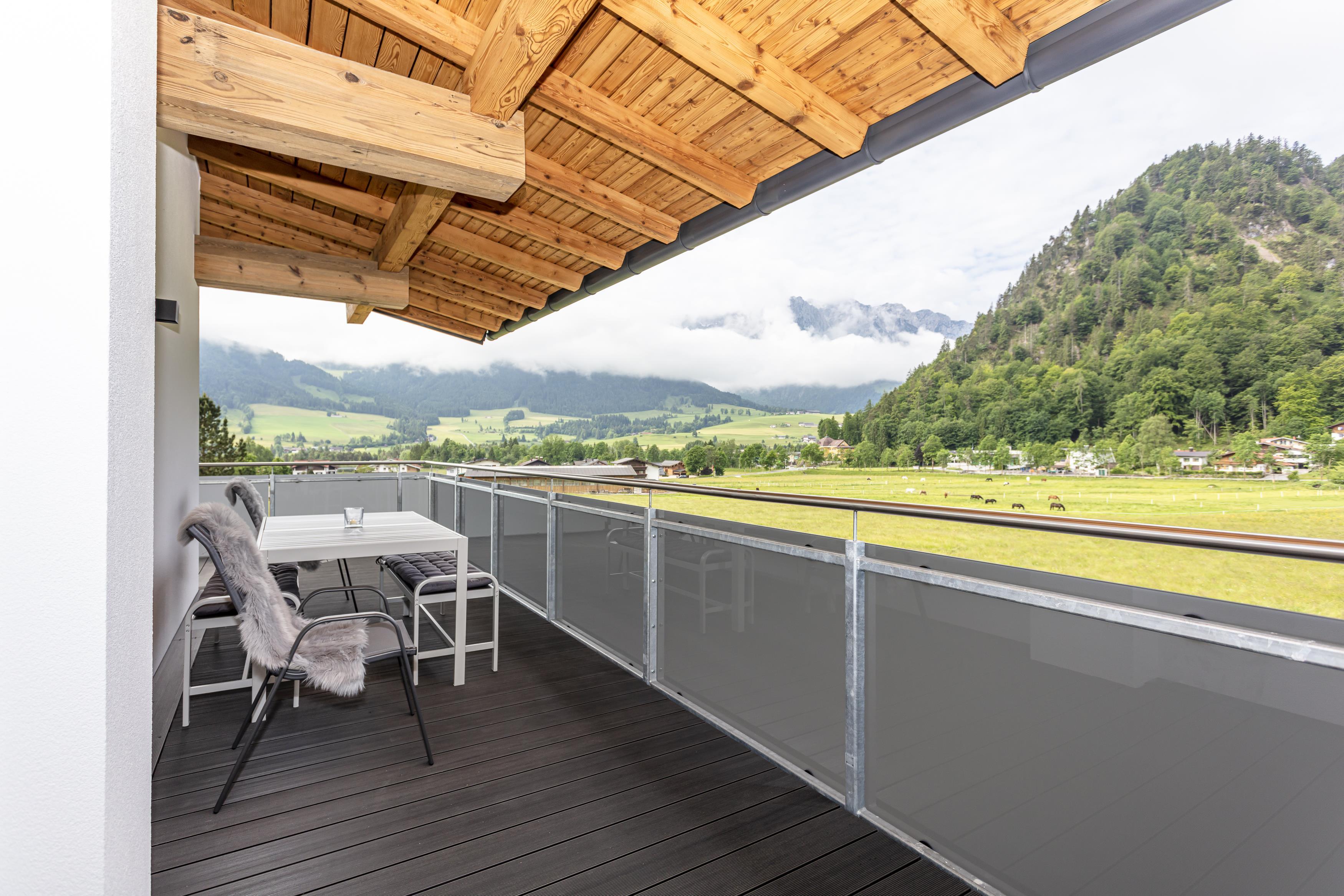 Die Ferienwohnung Wandberg besitzt eine Wohnfläche von 40 m² und bietet so Platz für 2 bis 4 Personen. Das Apparement ist voll ausgestattet mit Blick zum Kaisergebirge.