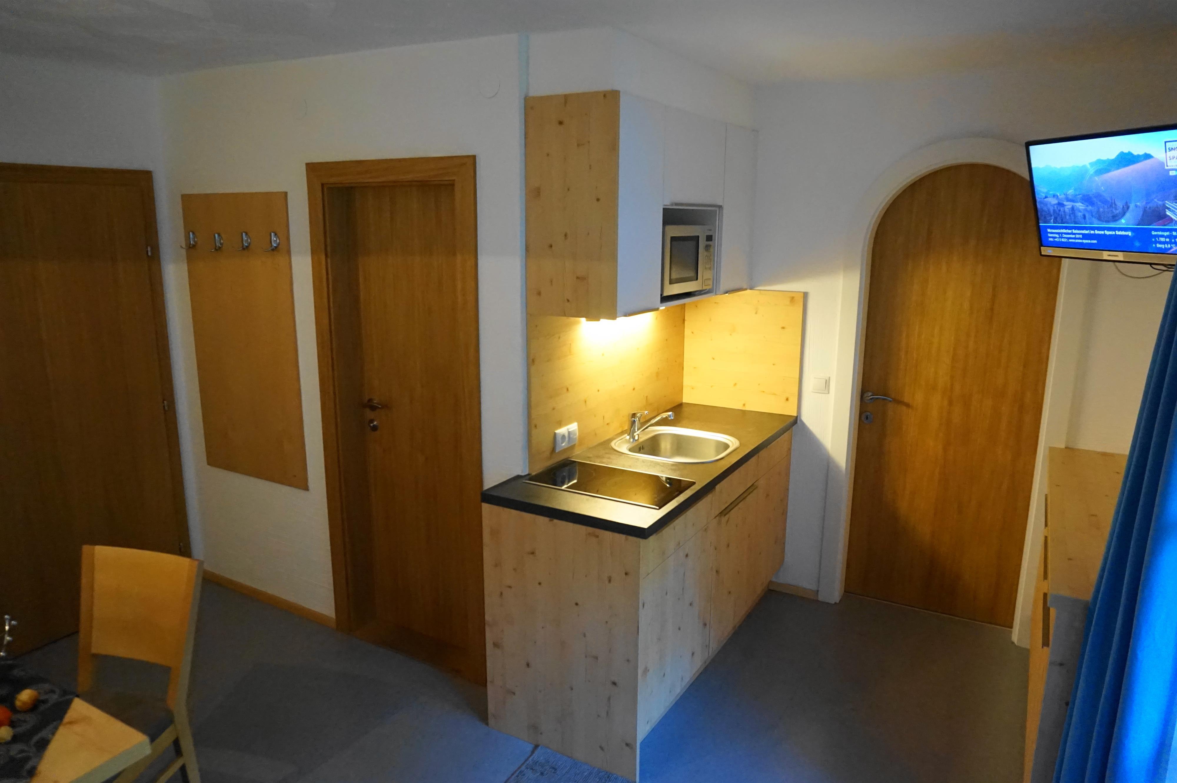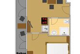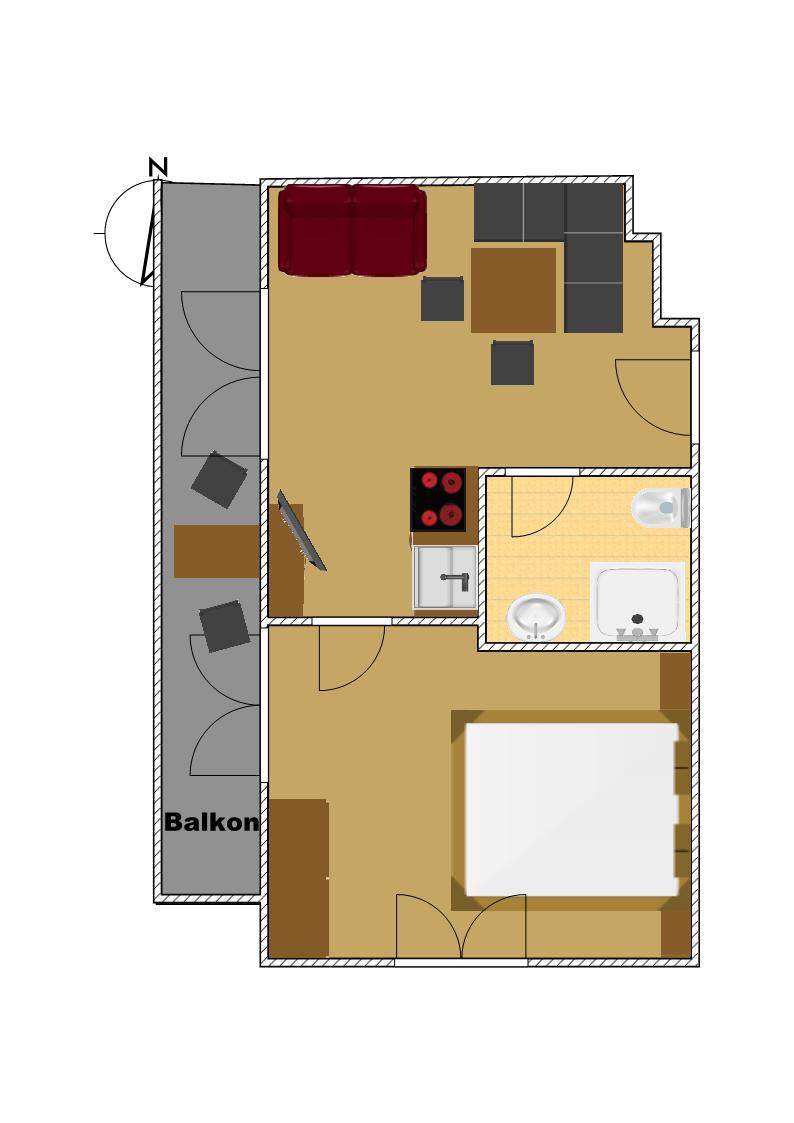 Ein ca. 35 m² großes 2-Raum-Appartement für 2-4 Personen mit einem Schlafraum, Dusche/WC, sowie einem Wohn-Schlafraum mit einer kompletten Küchenzeile inkl. Geschirrspüler, Sitzecke, Ausziehcouch, Kabel-TV, W-LAN, Balkon.
