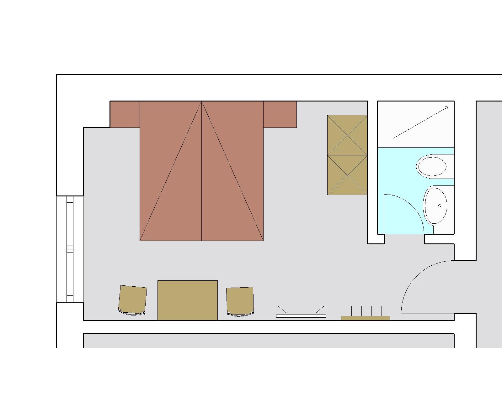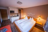 Das Doppelzimmer ist 22m² groß, befindet sich im Bauernhaus im 2. Stock und ist mit einer kleinen Küche,(Kühlschrank, Wasserkocher, Kaffeemaschine, Mikrowelle,…) Essplatz, DU/WC, Flachbild-Kabel TV und kostenlosen WLAN ausgestattet.