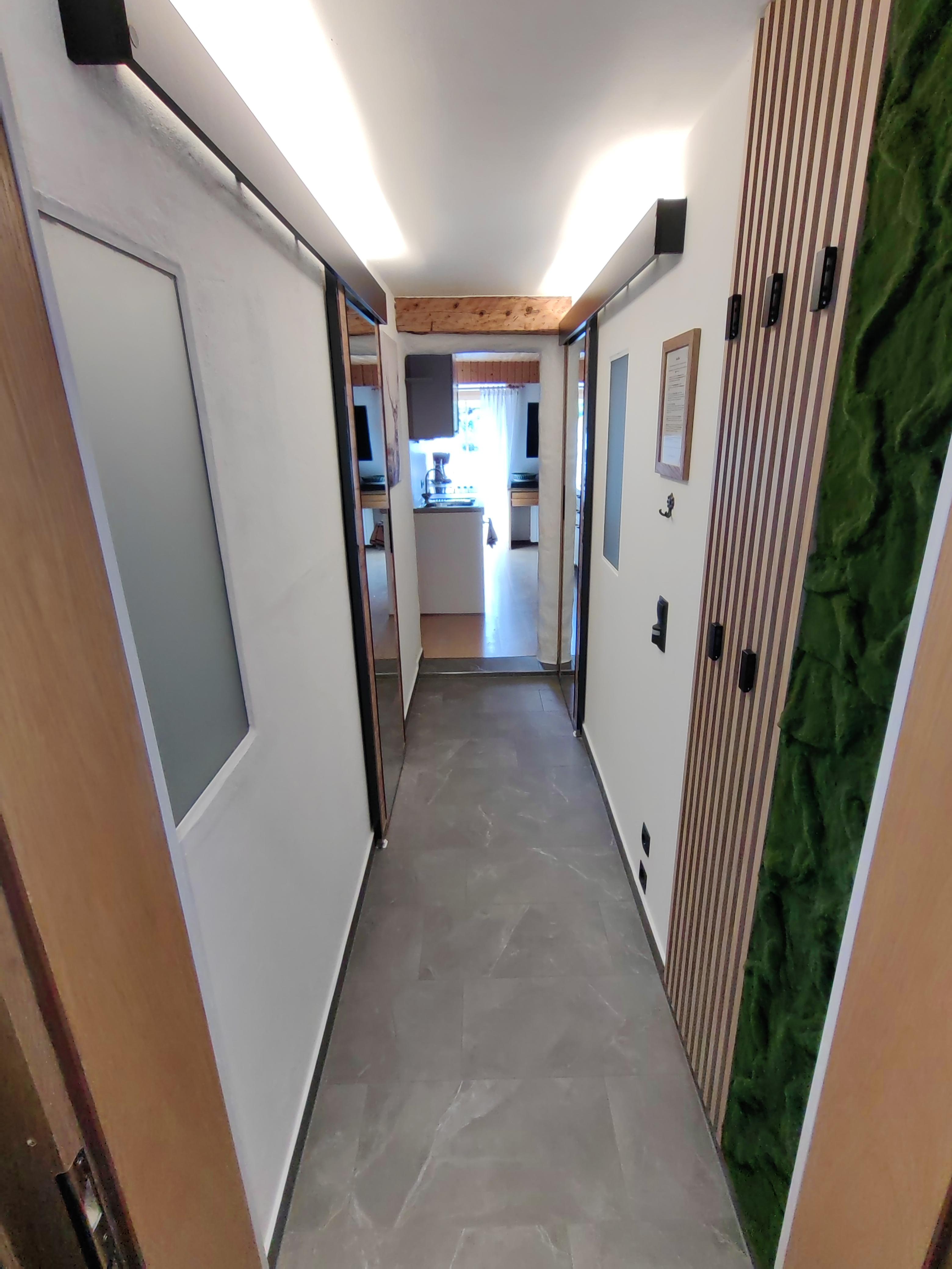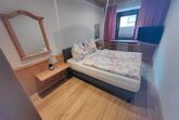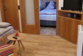 Neu renoviertes, großes Apartement für 4-6 Personen (ca. 70 m2) Großer Vorraum, großer Wohnraum mit ausziehbarer Couch und Essbereich sowie einer kleinen Küche, zwei Schlafzimmer mit Doppelbetten, zwei Badezimmer mit Duschen, zwei separate Toiletten, kleiner terrassenartiger Balkon Richtung Osten;