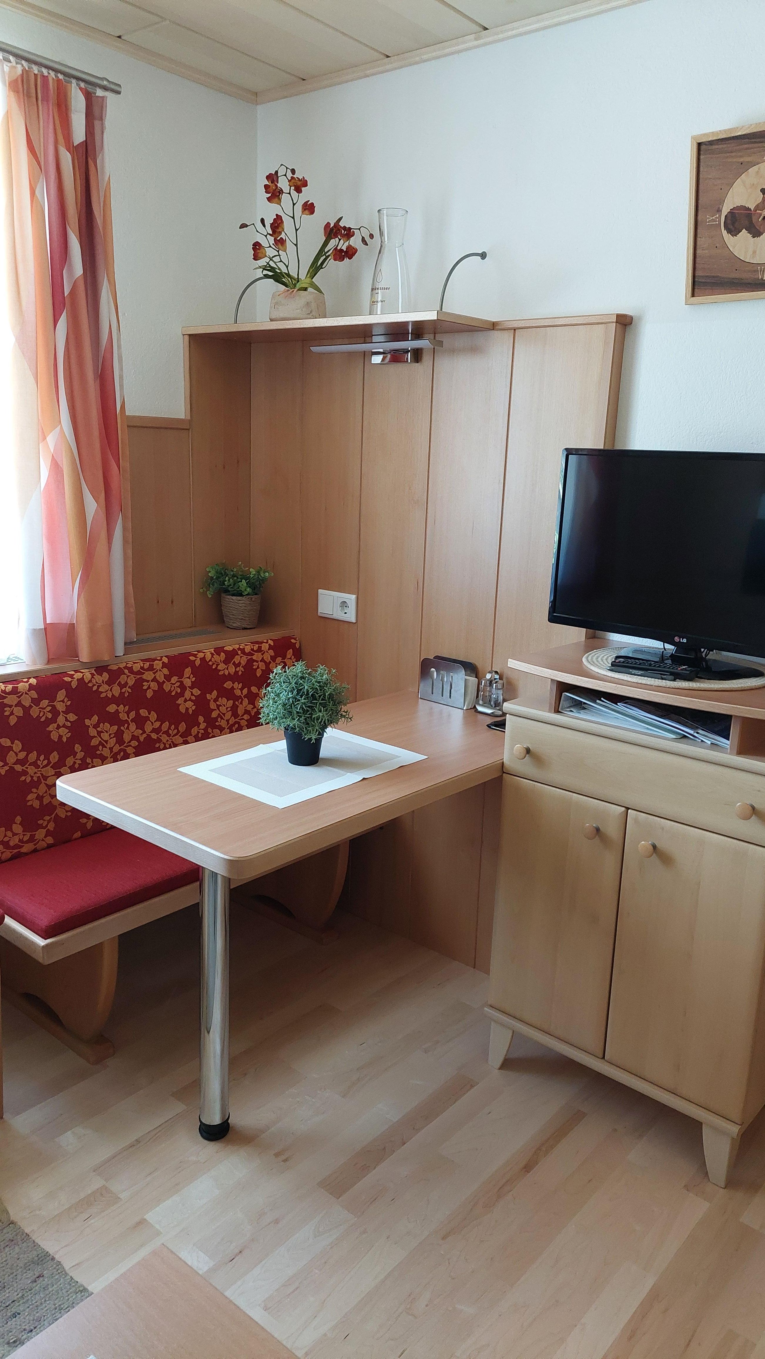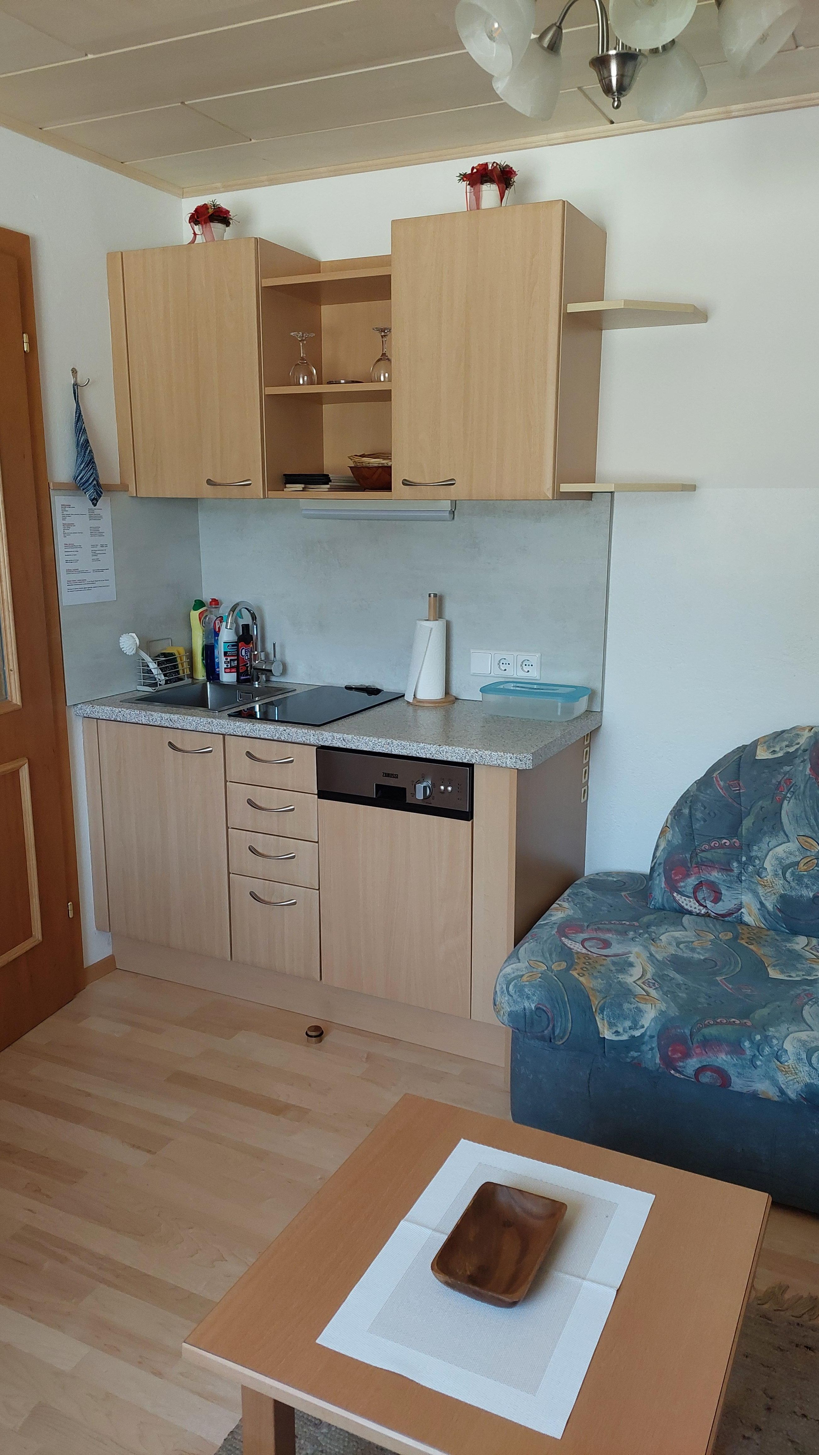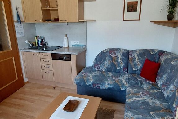 Kleine renovierte Ferienwohnung mit Parkettboden (Vorzimmer, Dusche/WC, 1 Schlafzimmer, kleine Wohnküche mit Kochnische, Kombi-Backofen/Mikrowelle, Geschirrspüler, Kaffeemaschine, Wasserkocher, Toaster, SAT-...) mit heller Möblierung, Wlan, Radio, Fön, SAT-TV !
