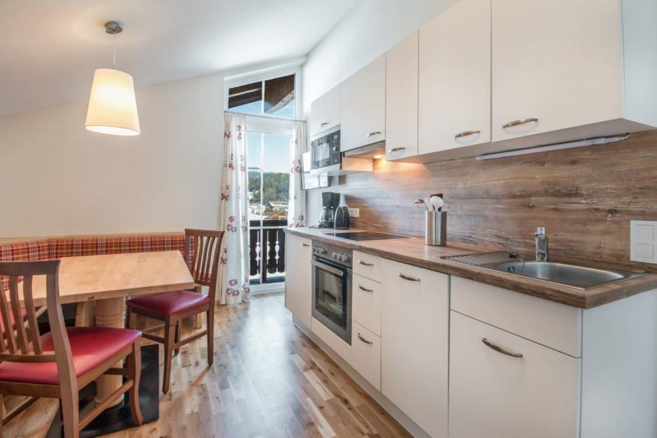 1 Doppelzimmer, 1 Dreibettzimmer, Holz-/Parkettboden, Wohnküche mit Sitzecke und Schlafcouch, inkl. Mikrowelle, Wasserkocher, Kaffeemaschine, Kühl- und Gefrierschrank, E-Herd mit Backrohr, Geschirrspüler, Geschirr, Besteck, Pfannen, Gläser