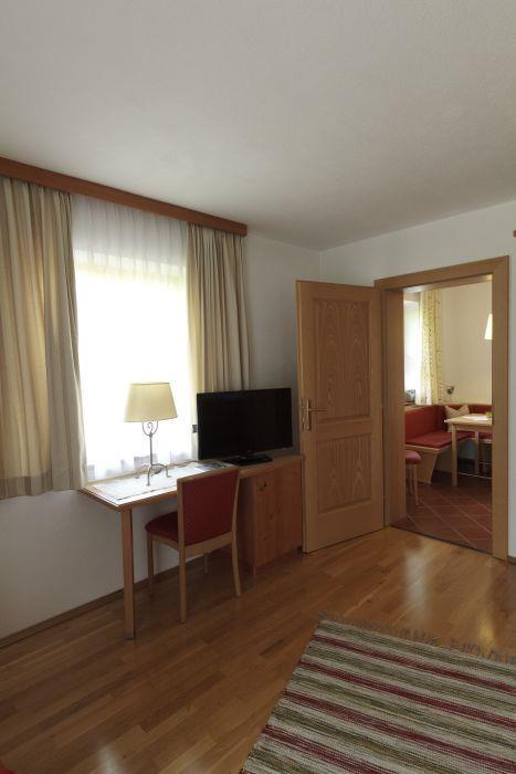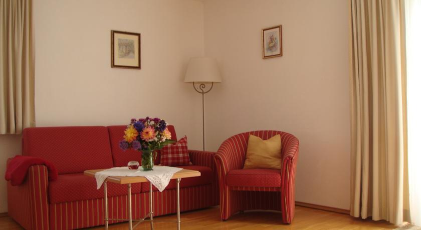 Ferienwohnung Karlstein - 75 m² - für max. 6 Personen. Das Haus wurde neu errichtet und ist mit hochwertigen Mobilar vom Voglauer Möbelwerk ausgestattet. Die Wohnungen sind mit Holz- und Fliesenböden ausgestattet (Allergiker). Die Fußbodenheizung sorgt für angenehme Wärme. Jede Wohnungen verfügt über einen eigenen Balkon mit herrlichen Blick auf die umliegenden Berge. Die Küche ist mit Mikrowelle, Herdplatten, Geschirrspüler, Kühlschrank, Kaffeemaschine, Wasserkocher, komplettem Kochgeschirr ausgestattet. Die sanitären Einrichtungen bestehen aus einem Waschtisch, 2x Dusche und 2x WC. Die sehr geräumige Wohnung Karlstein ist für 6 Personen geeignet und kann fallsweise zusätzlich für 1 Kleinkind adaptiert werden. Eine Küche samt Eßecke ergänzt das Raumangebot. Sie haben einen Fernseher mit SAT-Empfang sowie einen Radio mit CD-Player. Für Kleinkinder steht ein Kindersessel sowie ein Gitterbett bereit. In unseren Ferienwohnungen ist es selbstverständlich, dass Bettwäsche, Badetücher, Handtücher und Geschirrtücher vorhanden sind. ACHTUNG: Der Aufenthalt für Kinder bis 10 Jahre im Zusatzbett kostet Sie nichts. Alle Preise verstehen sich inkl. Kurtaxe und allen Abgaben!