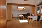 Wohnung Nr. 9/10 ca. 37 - 40qm. Großes Wohnschlafzimmer mit Doppelbett und ausziehbarer Doppelcouch, Tisch und bequeme Stühle, Küche mit Geschirrspüler und Fenster, Duschbad mit WC, Kabel-TV. Toaster, Wasserkocher, großer Balkon mit schöner Aussicht