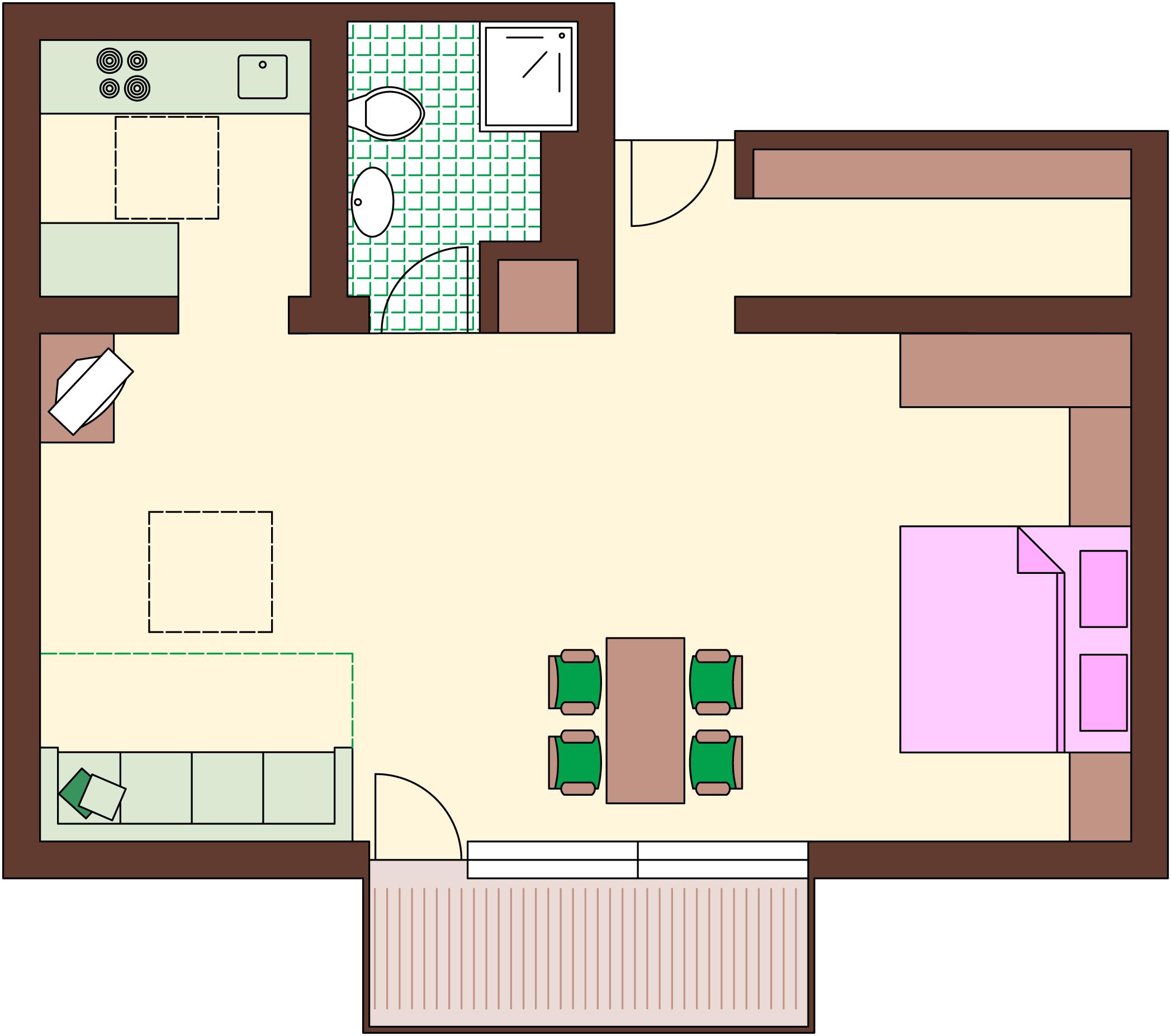 Es erwarten Sie funktionelle Studios mit kl. Kücher und Dusche/WC. Herrlicher Ausblick von unseren Balkonen auf die Gasteiner Bergwelt. Wäsche, Kabel-TV und kostenloses WLAN sind vorhanden.