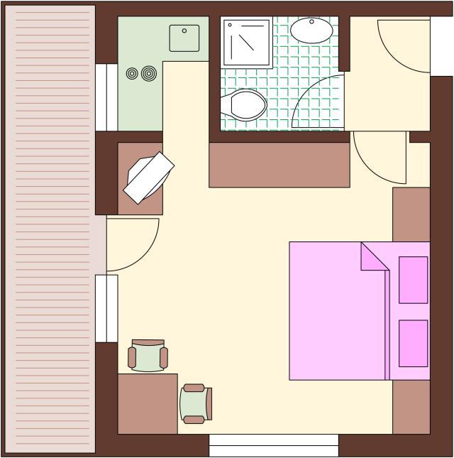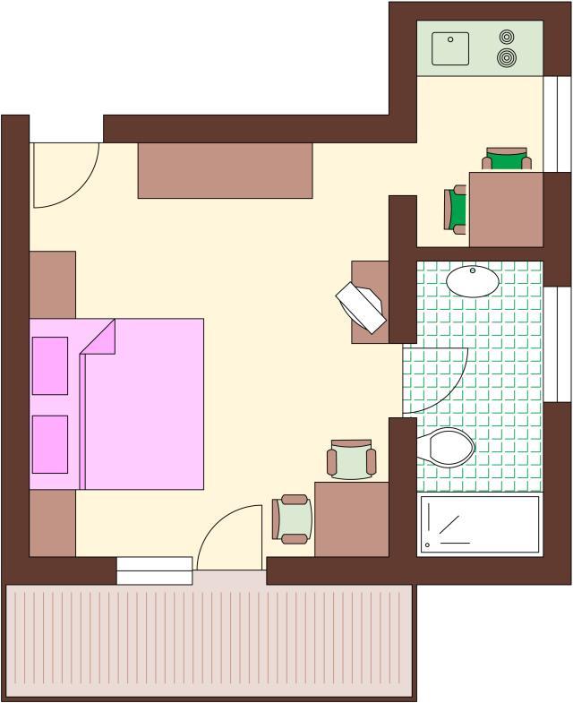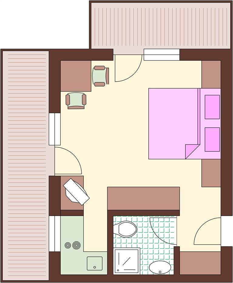 Es erwarten Sie funktionelle Studios mit kl. Kücher und Dusche/WC. Herrlicher Ausblick von unseren Balkonen auf die Gasteiner Bergwelt. Wäsche, Kabel-TV und kostenloses WLAN sind vorhanden.