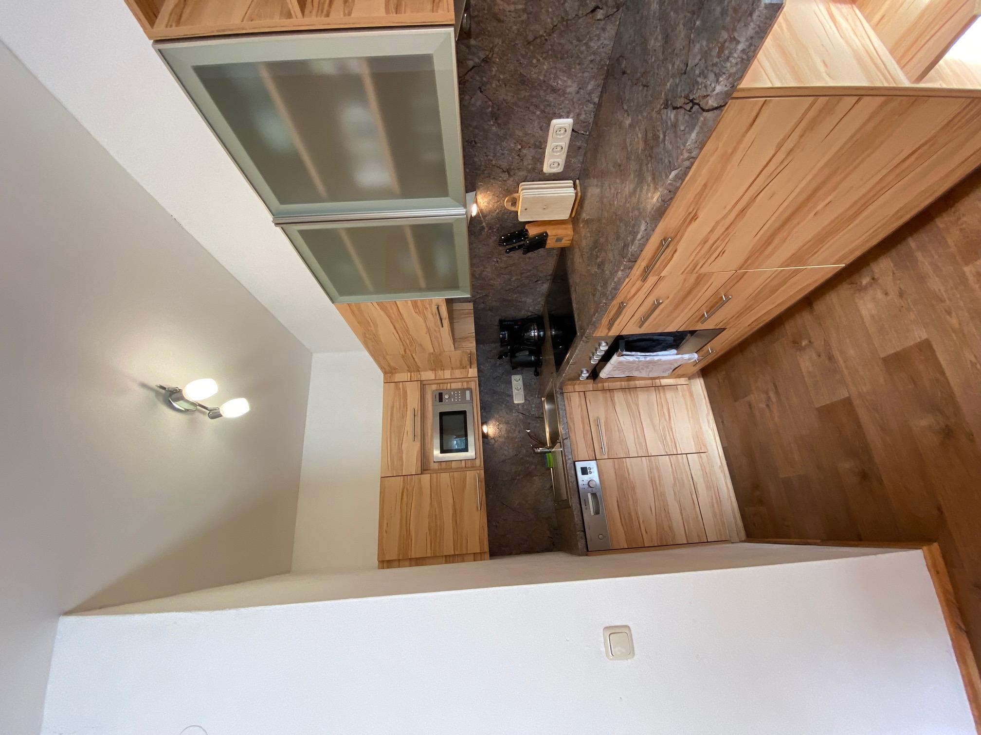 Ferienwohnung Königsberg 75m²: Küche und Wohnbereich, zwei Schlafzimmer- davon eines mit bis zu drei Betten, 2x Dusche /WC und Balkon.