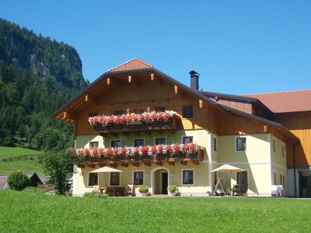 Mitten im Salzkammergut gelegen, umgeben von der Pracht der Osterhorngruppe und blühenden Wiesen.