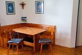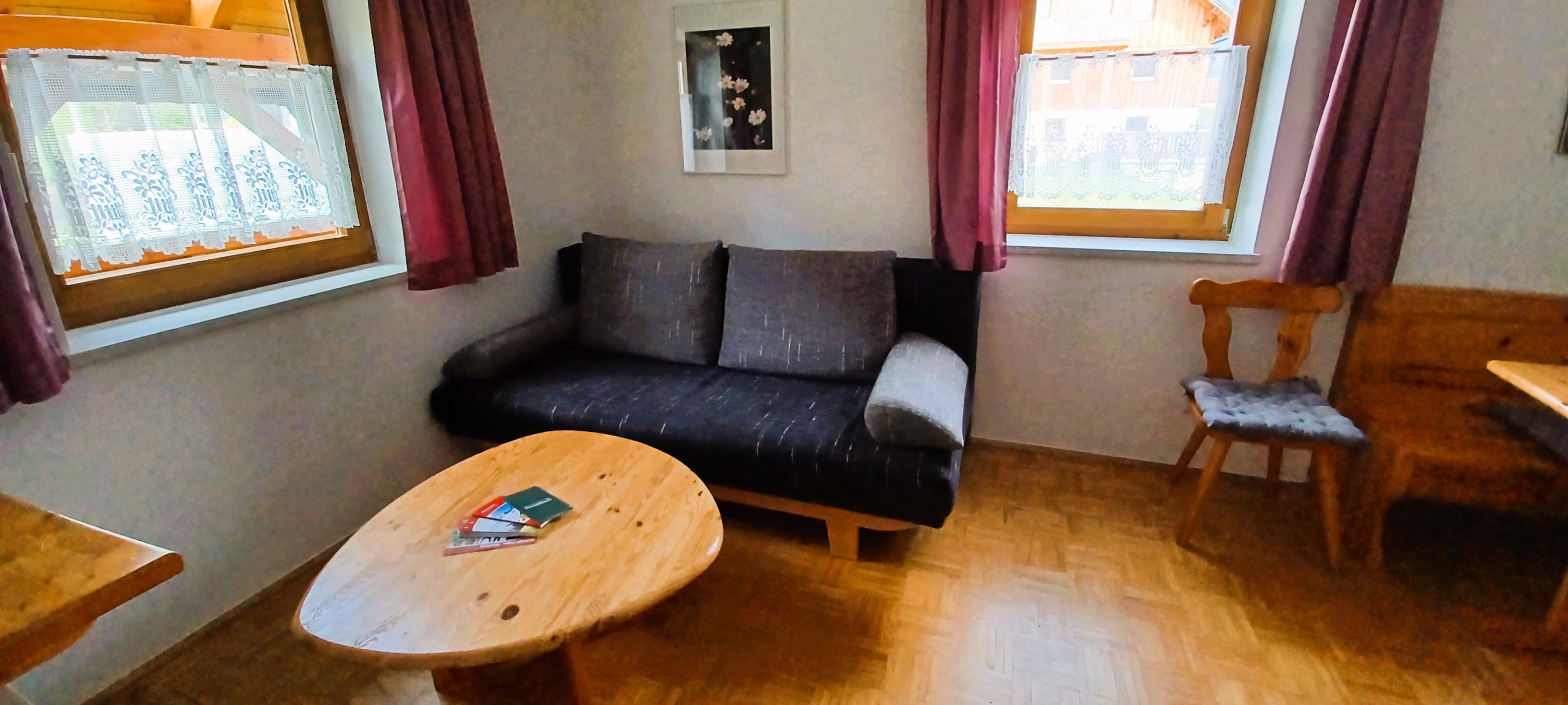 Familiennest: Doppelzimmer, DU/WC, gemütlichen Wohnraum mit TV, Küchenzeile, Essecke und großem ausziehbaren Schlafsofa für zwei Personen. Garten mit Sitzgelegenheiten.