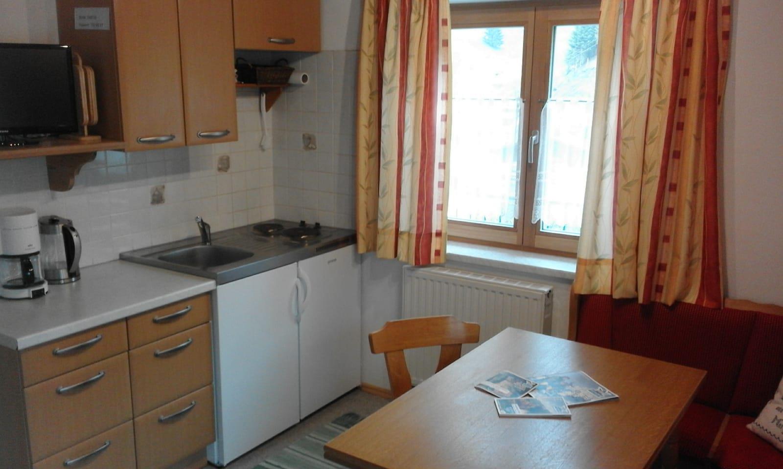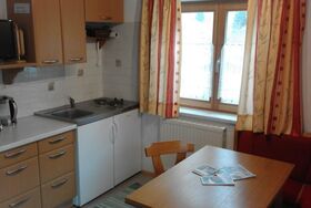 Die kleinere Wohnung (ca. 25 m²) besteht aus einer gemütlichen Wohnküche (mit Kabel-TV), einem Schlafzimmer und Dusche mit WC. Diese Wohnung bietet einen besonders schönen Blick auf das Panorama des Hochkönigs!