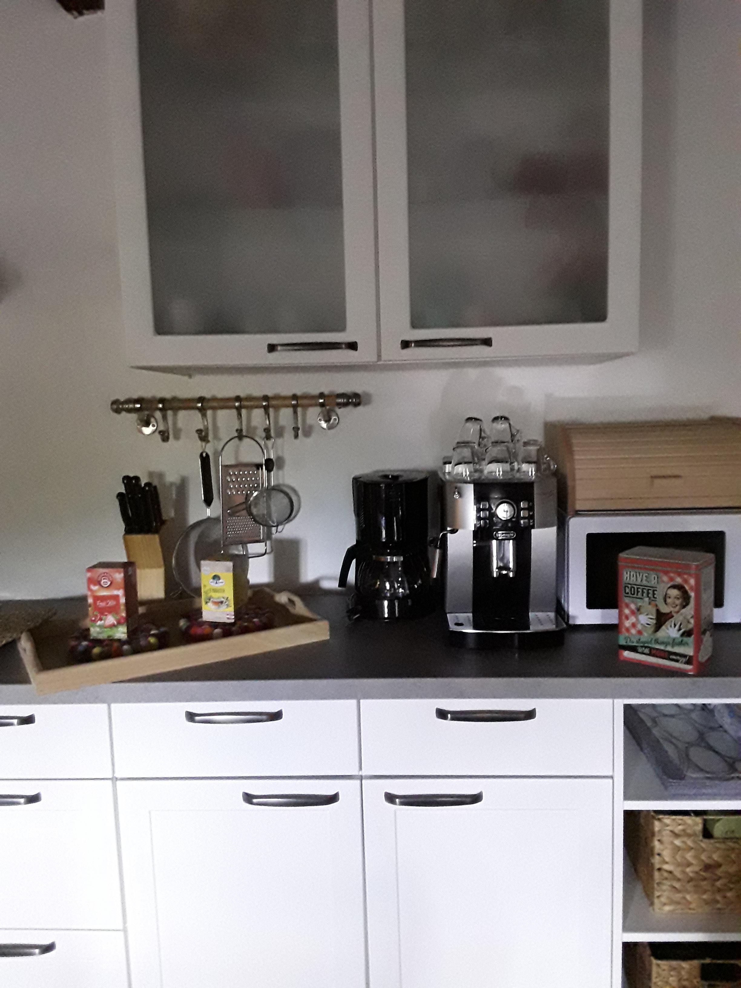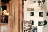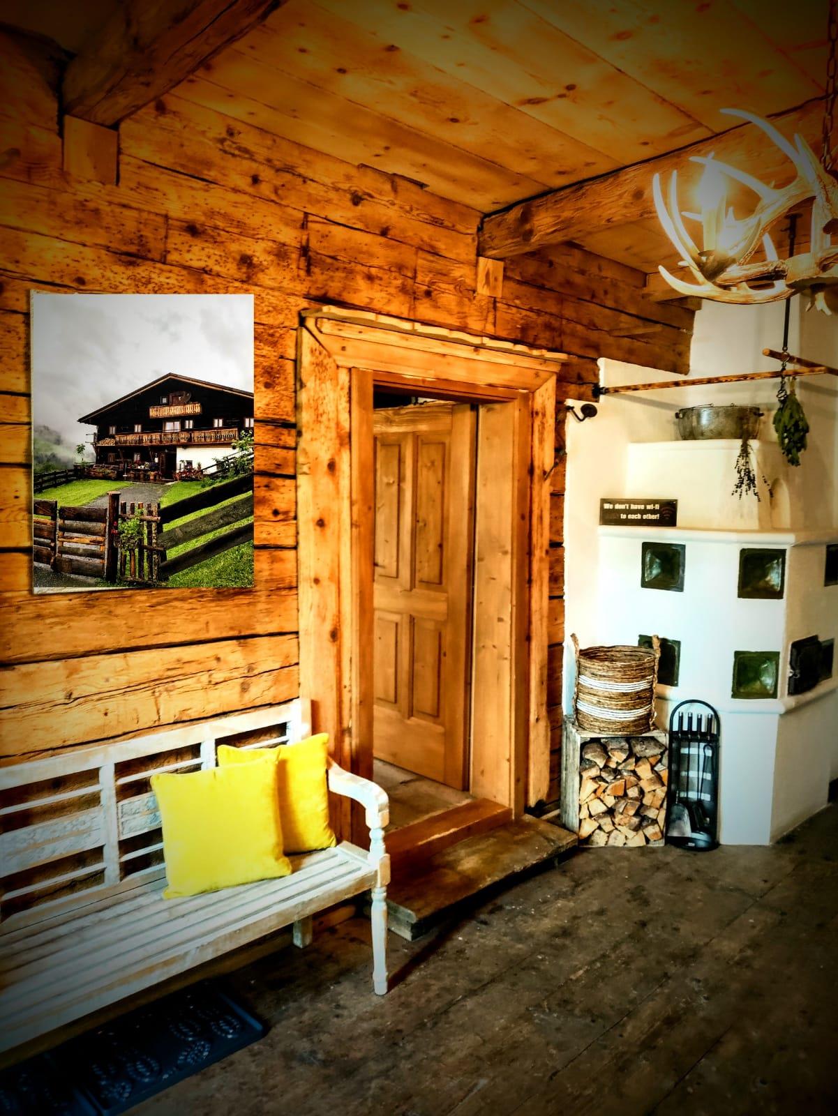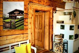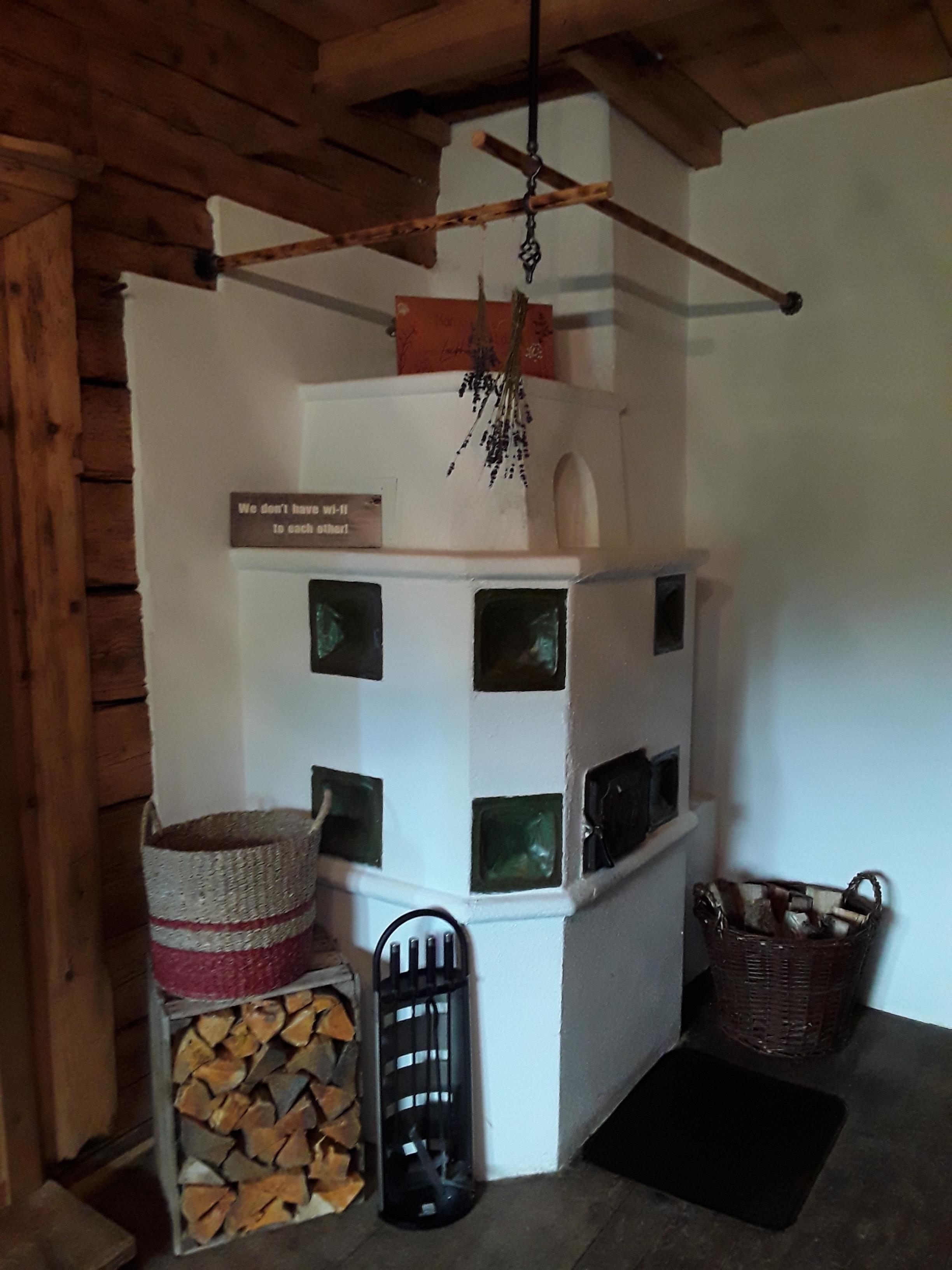 Im Erdgeschoß ist die komplett ausgestattete Küche mit Holzofen, eine heimelige Stube mit Kachelofen, Sofa und FLAT-TV