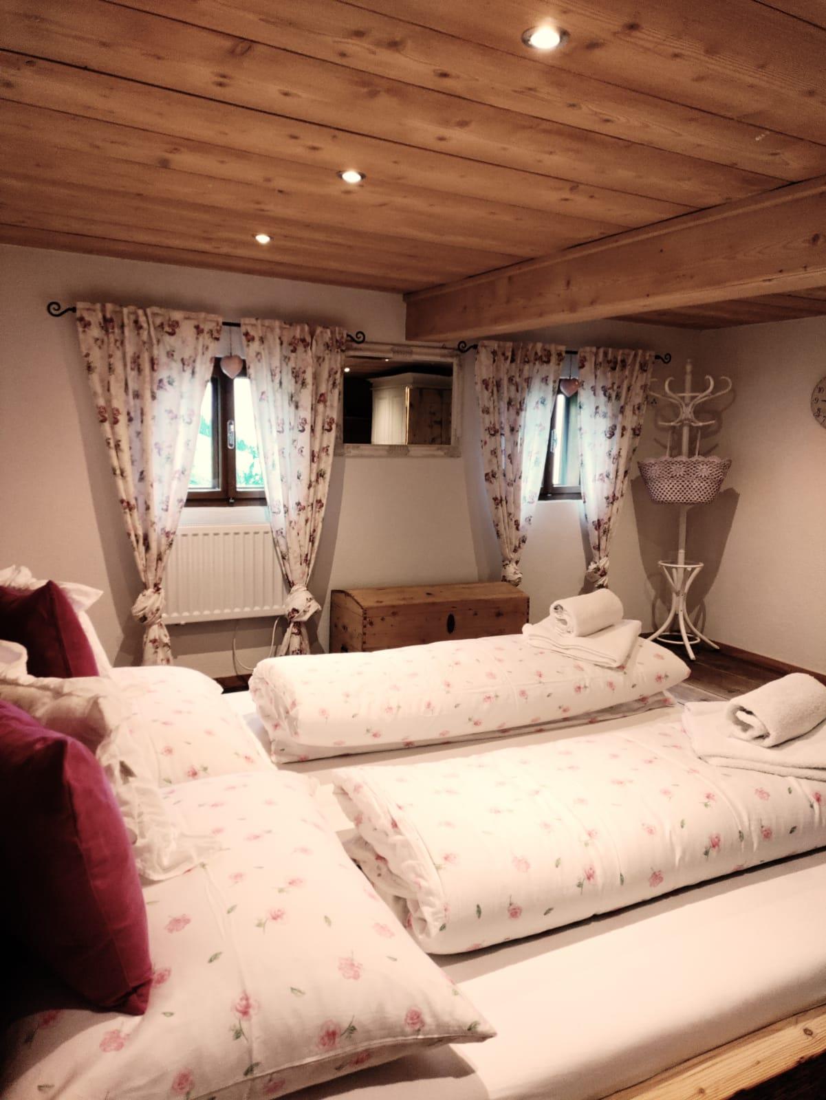 1 Familienzimmer (2 Etagen) mit eigenem Badezimmer mit Dusche/WC.
