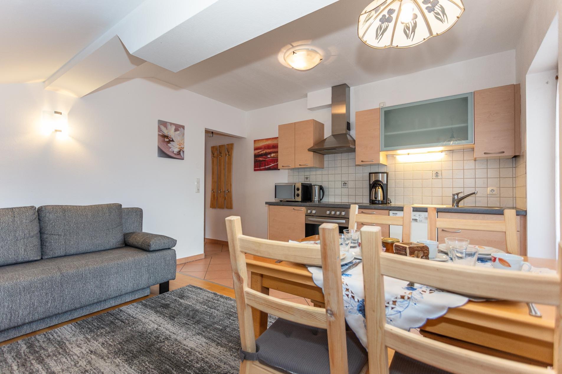 Auf 40 m² erwartet Sie eine liebevoll eingerichtete Ferienwohnung mit voll ausgestatteter Küche (inkl. Backofen, Geschirrspüler, Mikrowelle, Kaffeemaschine u.v.m.), Kabel-TV, WLAN und separatem Schlafzimmer.