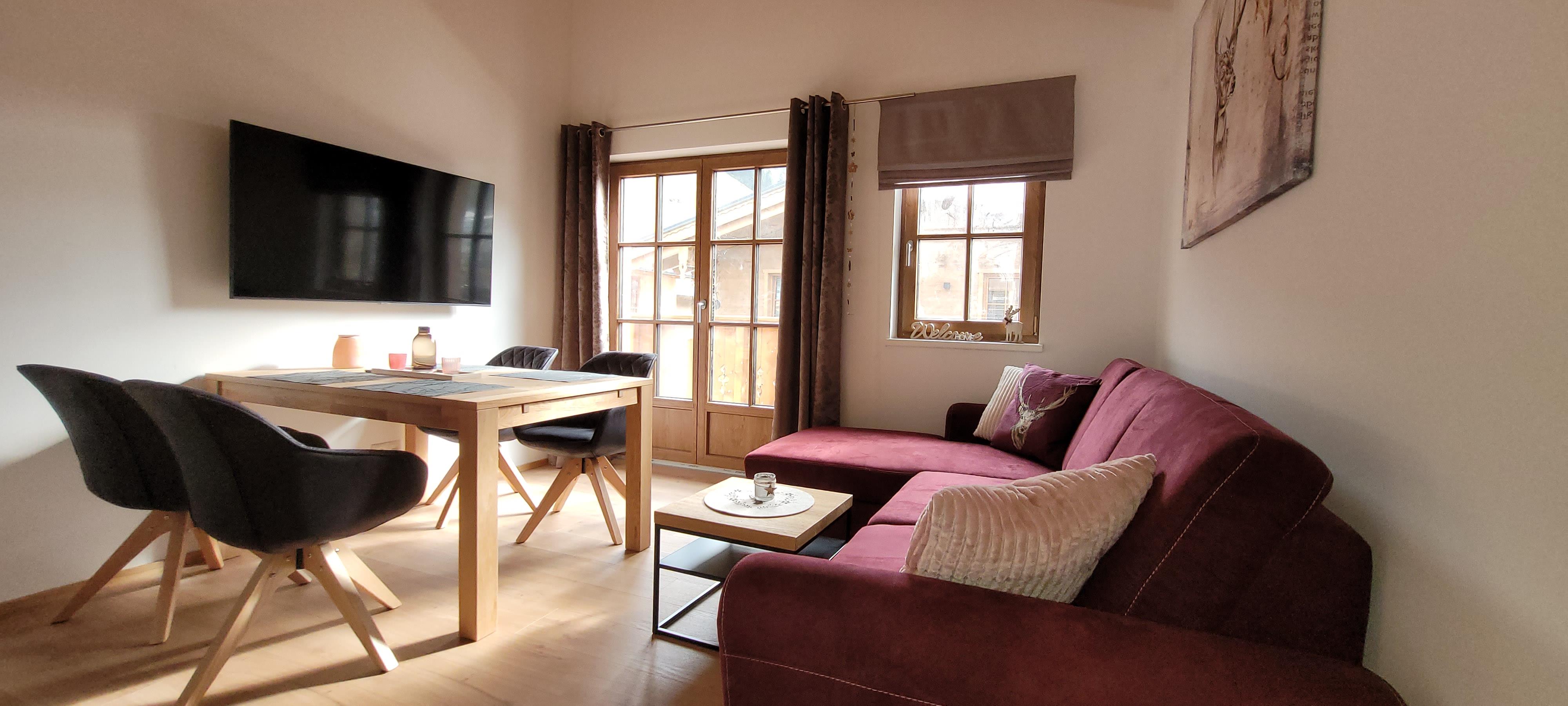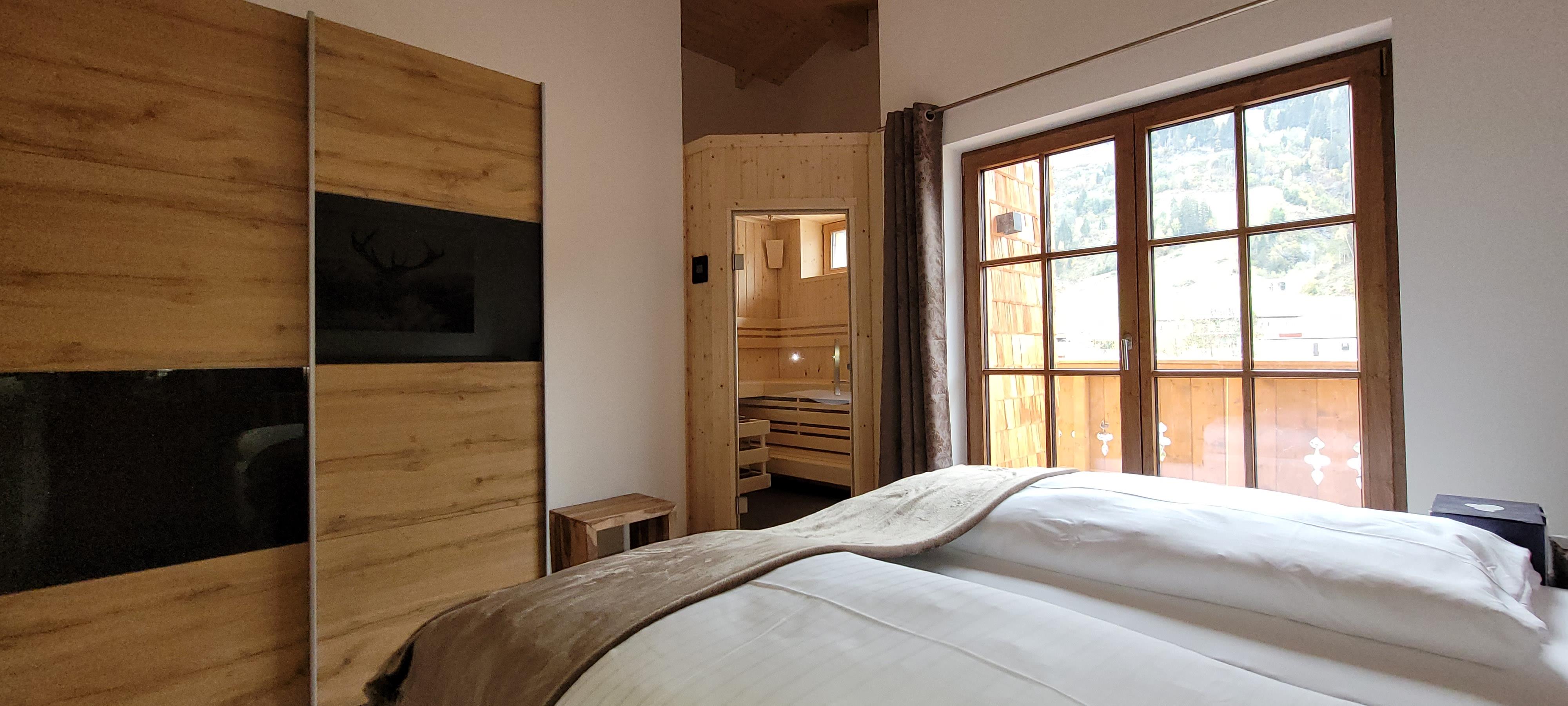 Das Appartement befindet sich im Obergeschoß und hat 2 Schlafzimmer mit Boxspringbett, Schrank und einem großem TV Flachbildschirm. Darüber hinaus haben wir ein modernes und gemütliches Bad mit Fenster. Wenn Sie von Ihren Unternehmungen zurückkehren können Sie sich an der in die Wohnküche integrierten Bar erholen. Vom großzügig gestalteten und gemütlich und hochwertig eingerichteten Wohn- Essbereich mit großem TV Flachbildschirm, haben Sie einen Blick auf die Rauriser Berge. Vor dem Wohn- Essbreich haben Sie einen großen nach Süden ausgerichteten Balkon. Ebenfalls steht Ihnen eine private Saune in der Wohnung zur Verfügung.