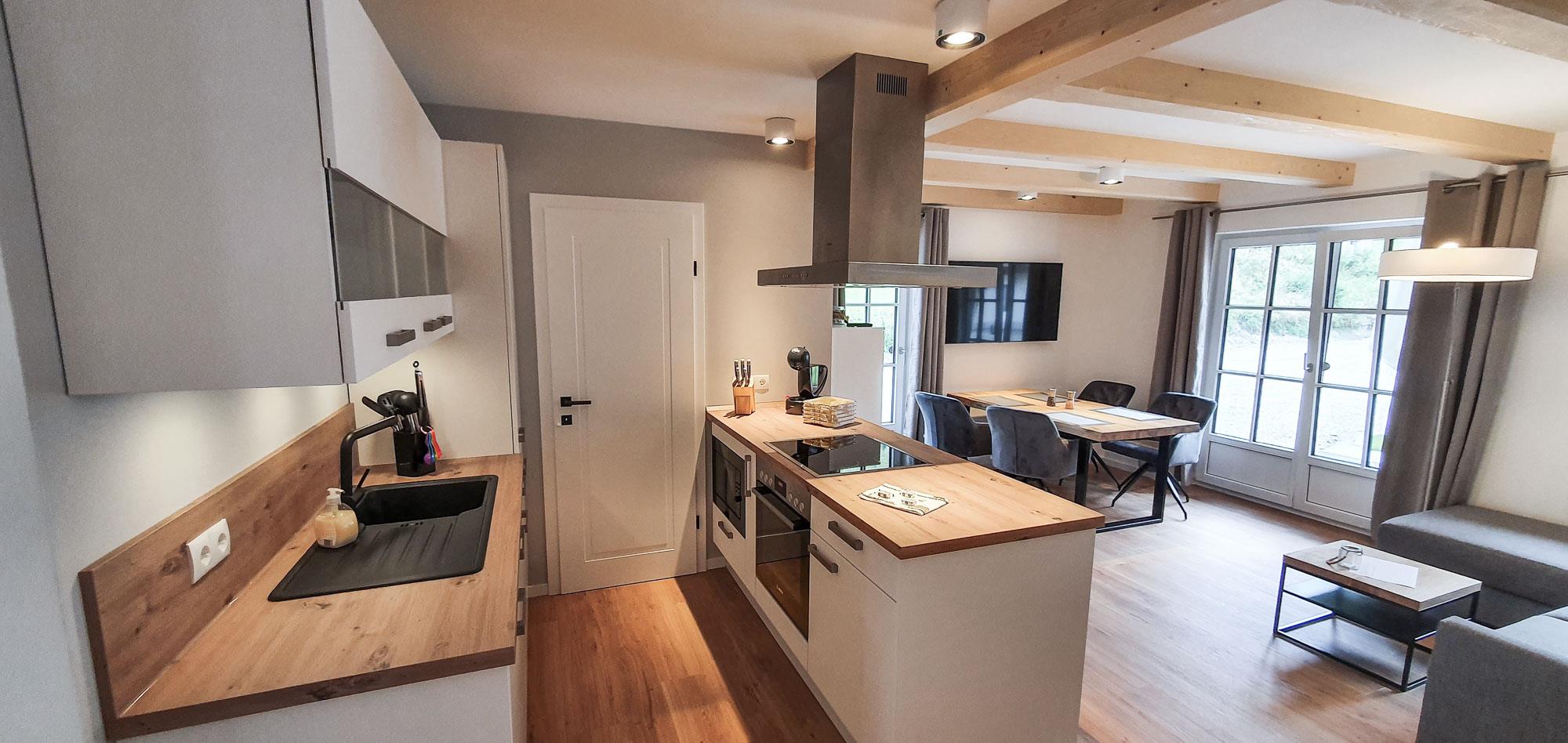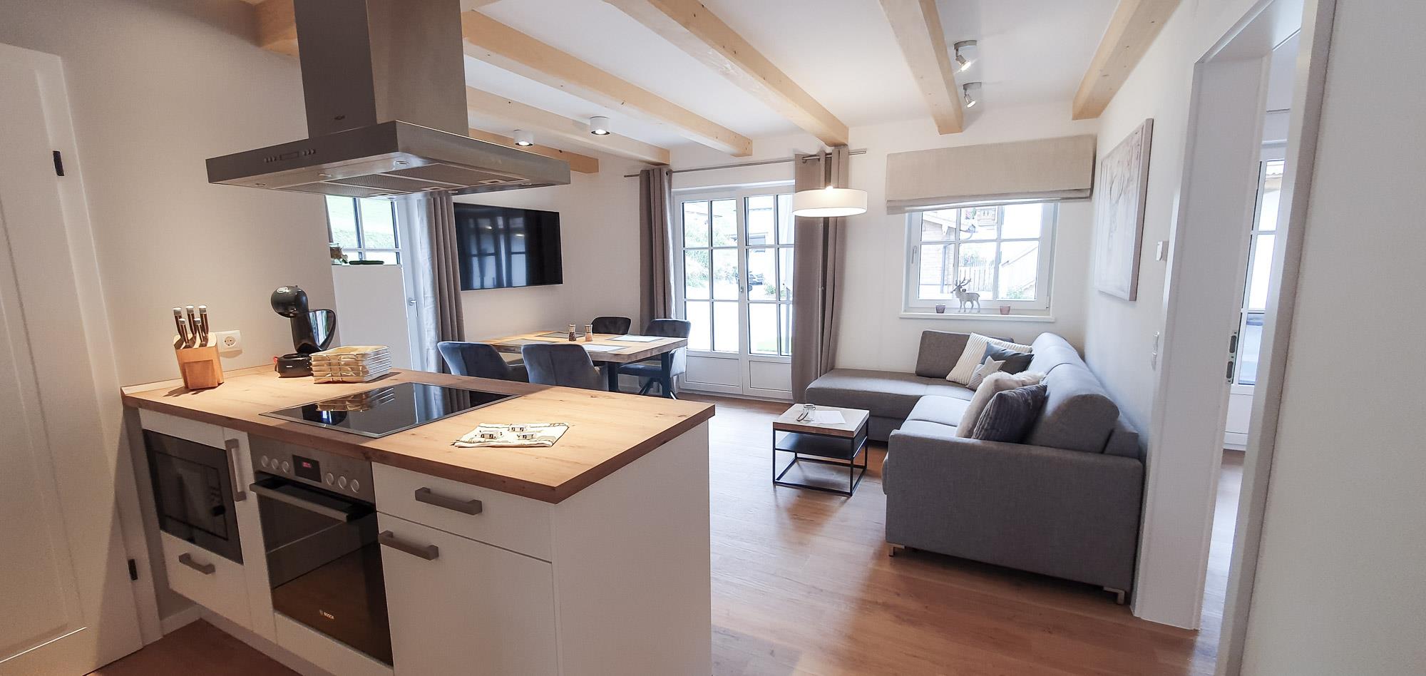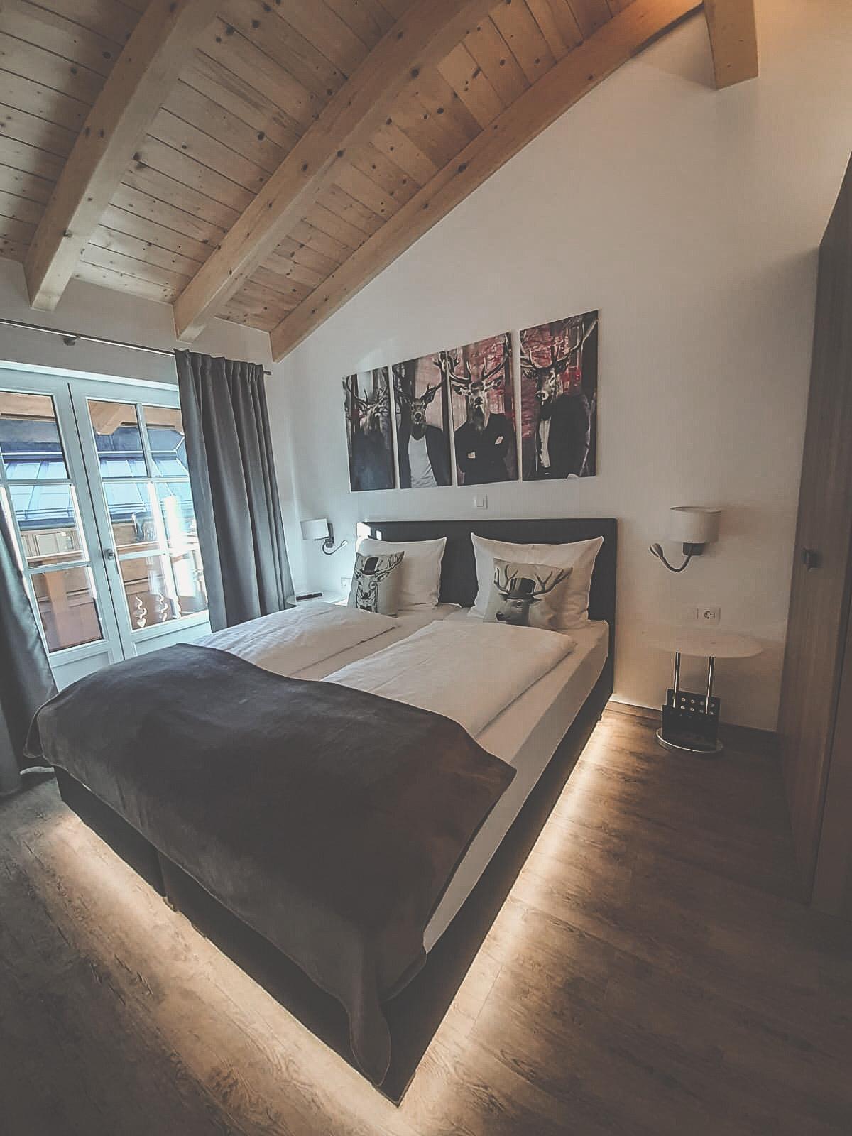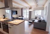 Die Wohnung mit zwei Schlafzimmern befindet sich im Erdgeschoss mit Südterrasse. Die Schlafzimmer sind groß und modern mit Boxspringbett und Flatscreen TV. Ein modernes Badezimmer mit Dusche und WC sowie einem Fenster, gehört ebenfalls zu dieser Ausstattung. Unsere Gäste können nach der Rückkehr von ihren täglichen Aktivitäten an ihrer Bar sitzen, die in das offene Küchenkonzept integriert ist. Von dem wunderschön gestalteten, gemütlichen und hochwertig eingerichteten Wohn-Essbereich mit großem Flachbildfernseher, haben Sie einen Blick auf den Hohen Sonnblick (3106 m). Außerdem verfügt die Wohnung über eine eigene Außensauna und einer 11 KW Wallbox.