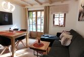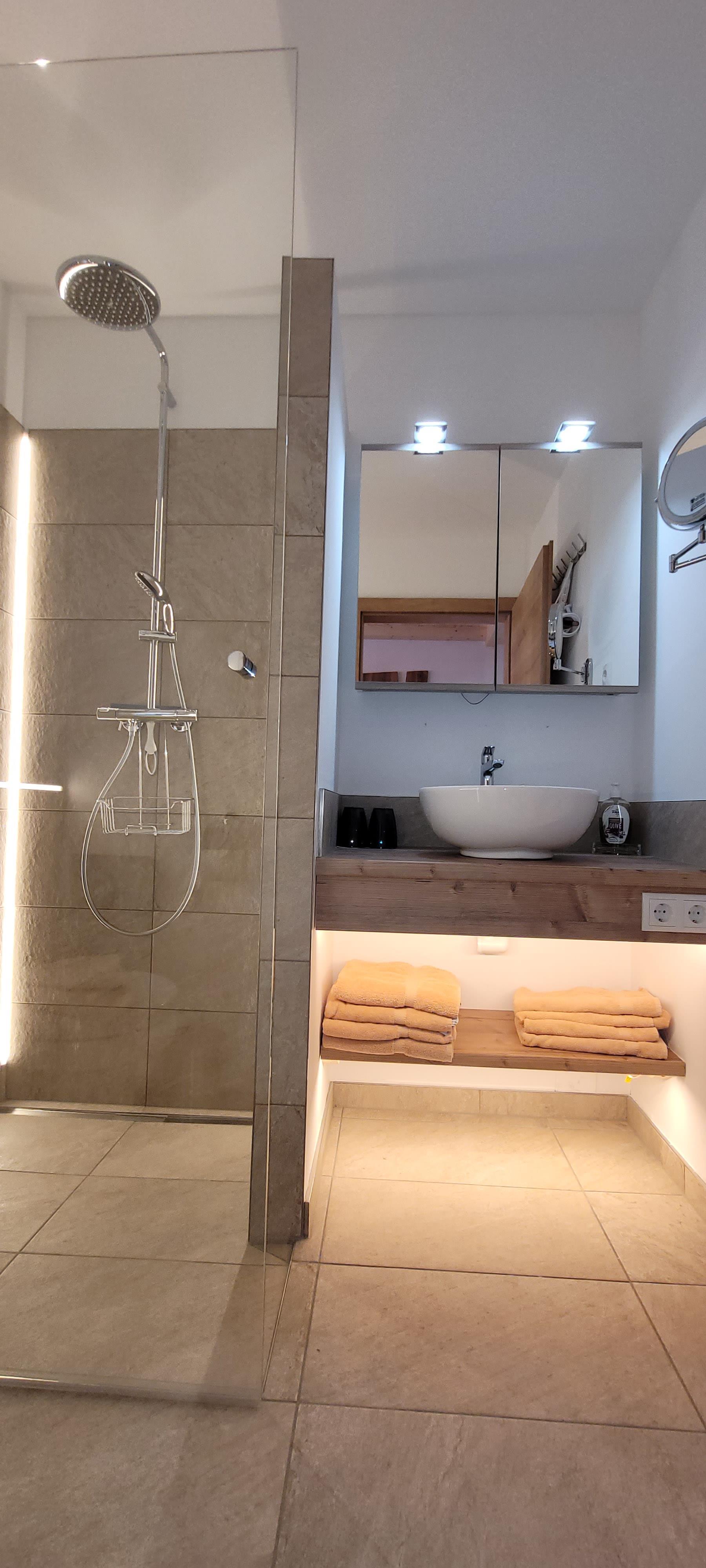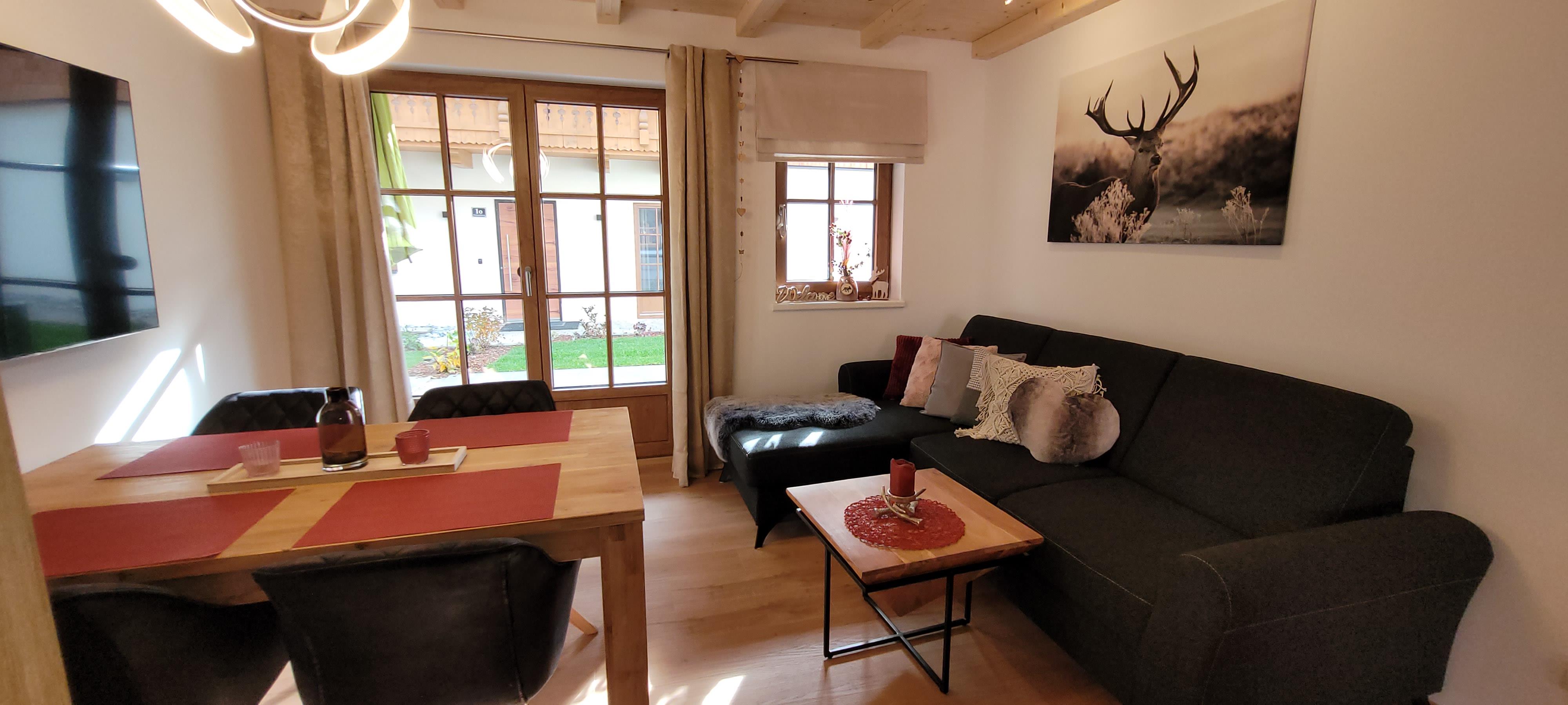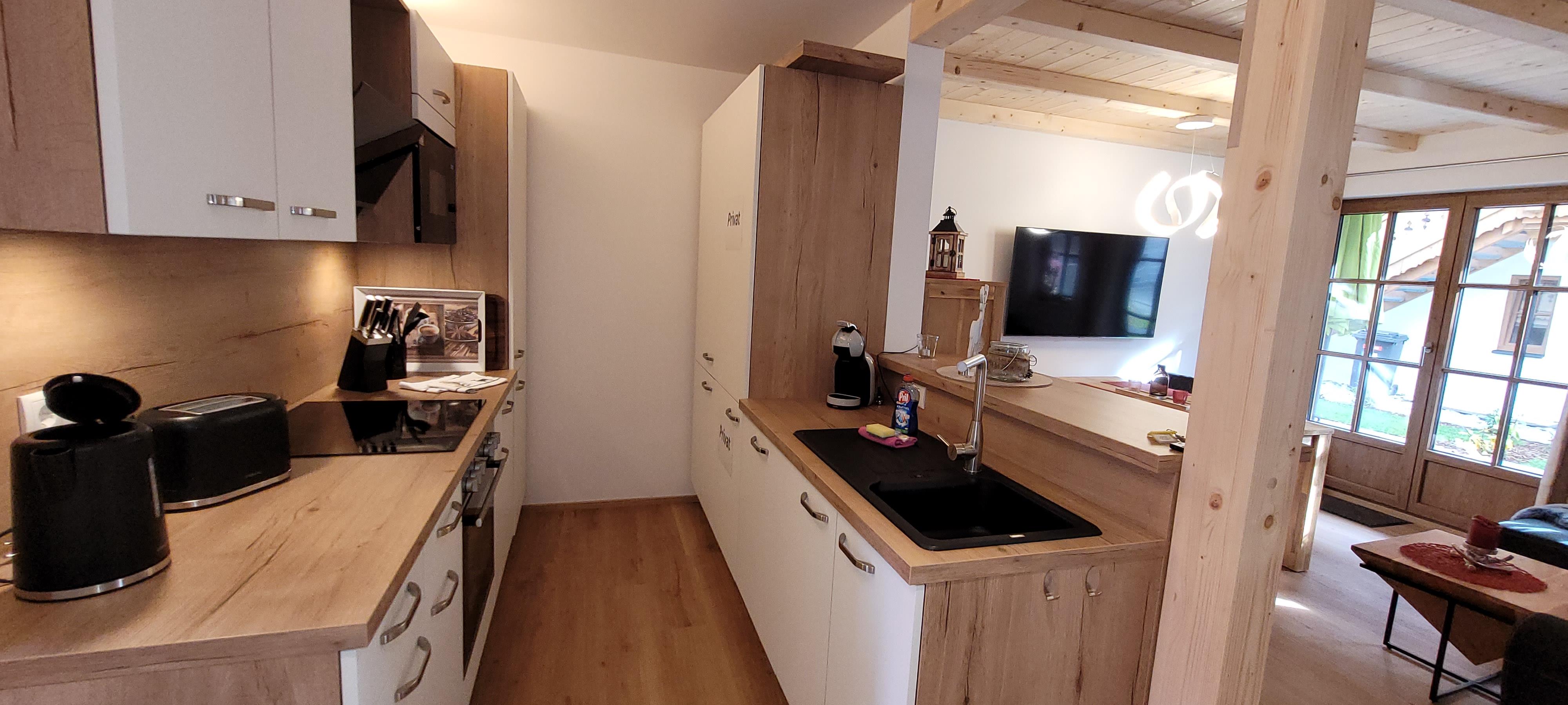 Die Wohnung mit zwei Schlafzimmern befindet sich im Erdgeschoss mit Südterrasse. Die Schlafzimmer sind groß und modern mit Boxspringbett und Flatscreen TV. Ein modernes Badezimmer mit Dusche und WC, gehören ebenfalls zu dieser Ausstattung. Unsere Gäste können nach der Rückkehr von ihren täglichen Aktivitäten an ihrer Bar sitzen, die in das offene Küchenkonzept integriert ist. Von dem wunderschön gestalteten, gemütlichen und hochwertig eingerichteten Wohn-Essbereich mit großem Flachbildfernseher, haben Sie einen Blick auf die Rauriser Berge.