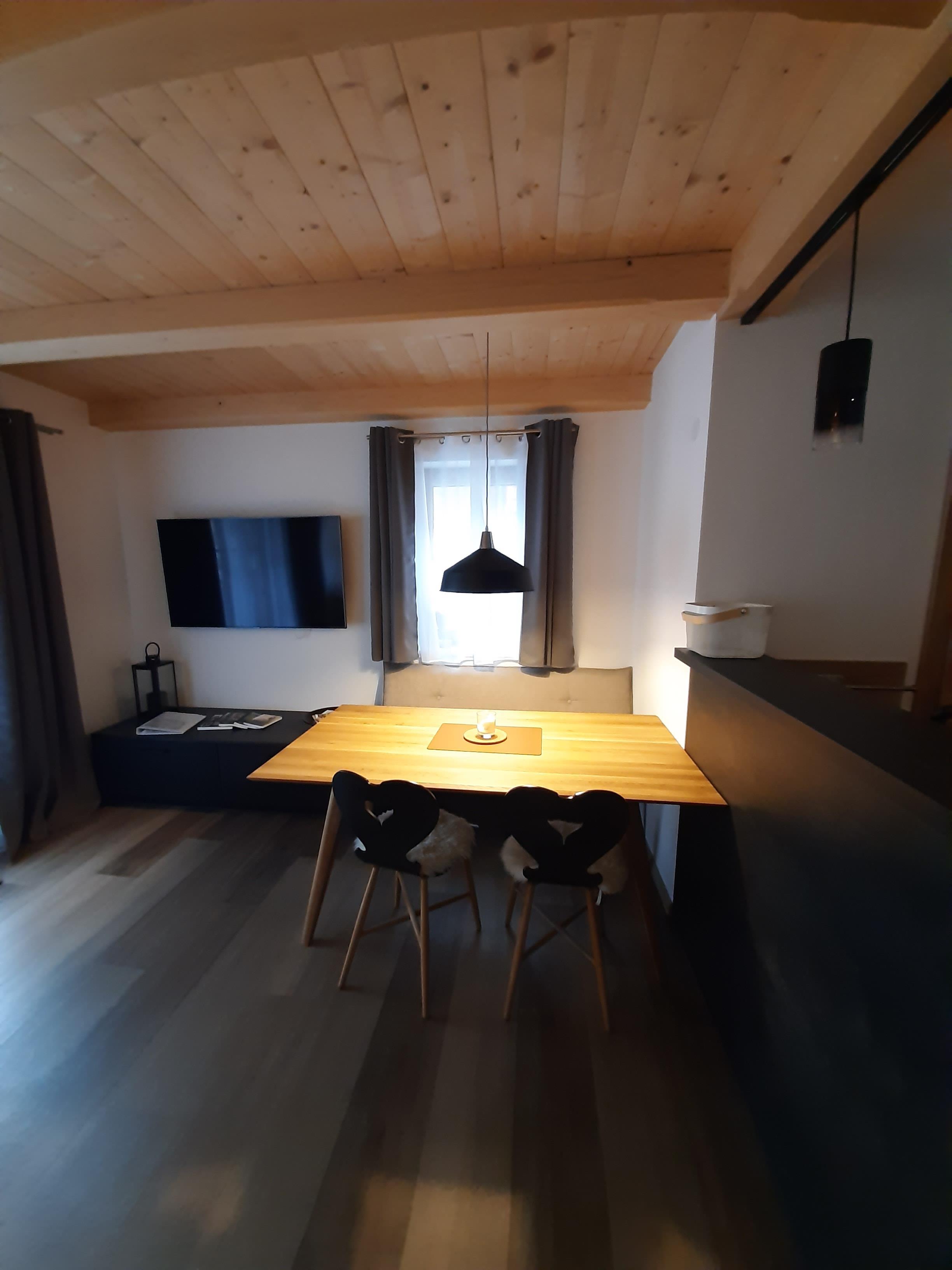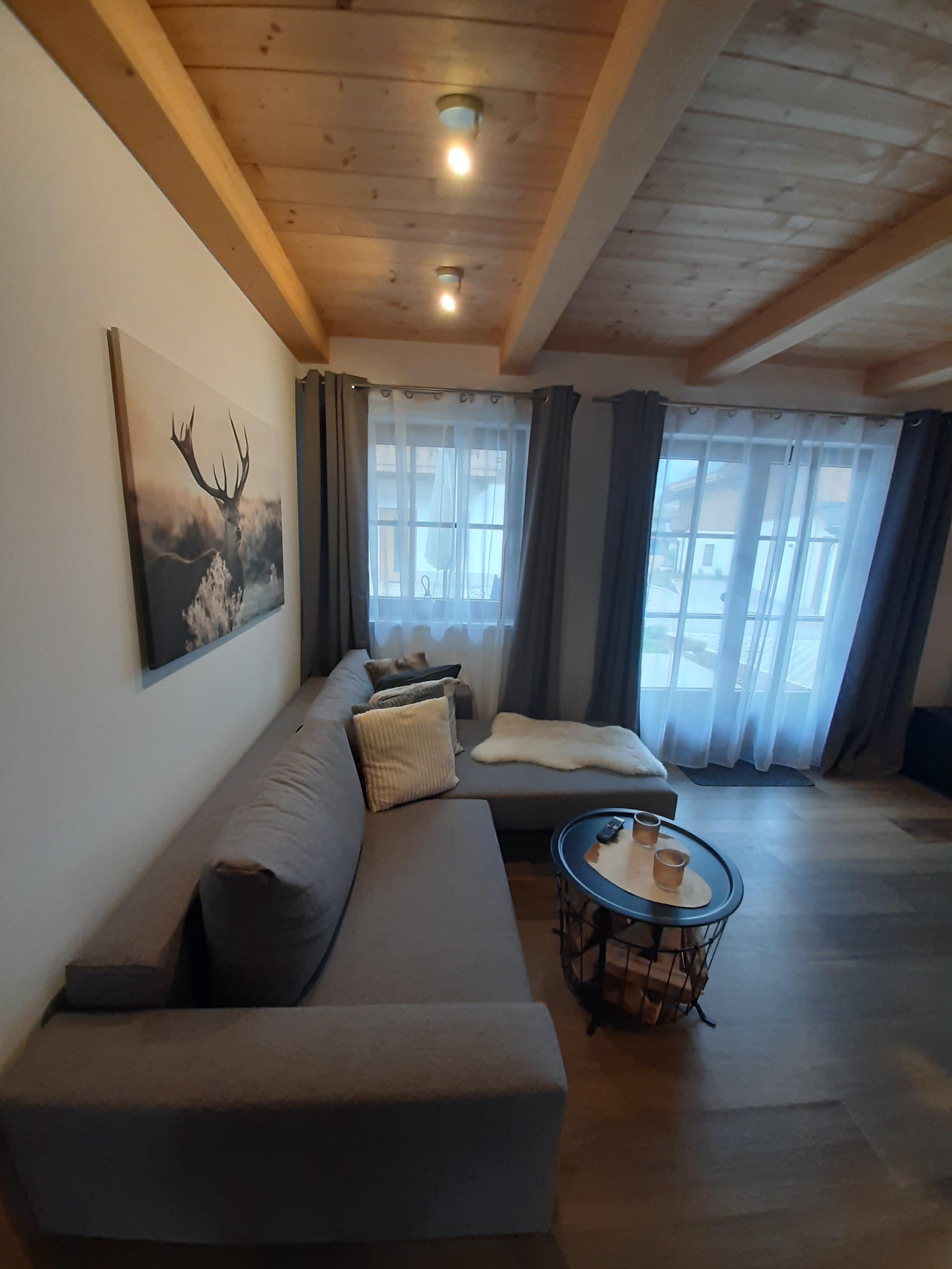 Das Appartement befindet sich im Erdgeschoß und hat 2 Schlafzimmer mit Boxspringbett, Schrank, großem TV Flachbildschirm, ein Schlafzimmer hat zusätzlich einen nach Süden ausgerichtete Terrasse. Darüber hinaus haben wir ein modernes und gemütliches Bad mit Fenster. Wenn Sie von Ihren Unternehmungen zurückkehren können Sie sich an der in die Wohnküche integrierten Bar erholen. Vom großzügig gestalteten und gemütlich und hochwertig eingerichteten Wohn- Essbereich mit großem TV Flachbildschirm haben Sie einen Blick auf den Hohe Sonnblick (3106 m). Vor dem Wohn- Essbreich haben Sie eine große nach Süden ausgerichtete Terrasse.