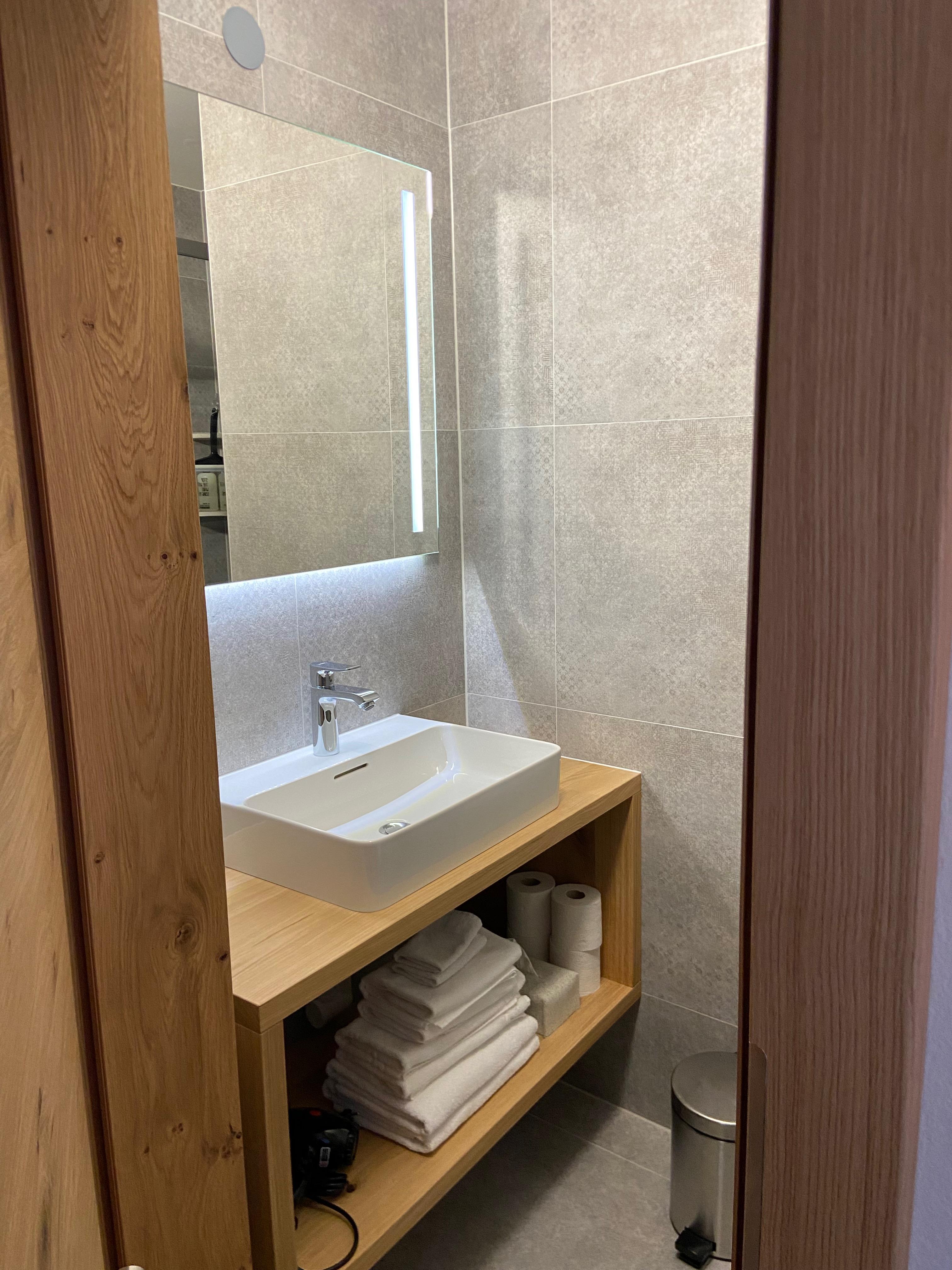 FeWo/Schlafzimmer/Boxpringbett/Bad/Dusche/WC/Föhn/Guest supplies/Bettwäsche/Bade-Handtücher/Safe/kompl.Wohnküche/Tisch/Couch-Schlafcouch 1-2Pax/2FlatTV/Spüler/Geschirr/Ceran/Mikro/Kühl-Gefrierschrank/Nespresso Masch./Balkon/gratis Wlan/kein Haustier