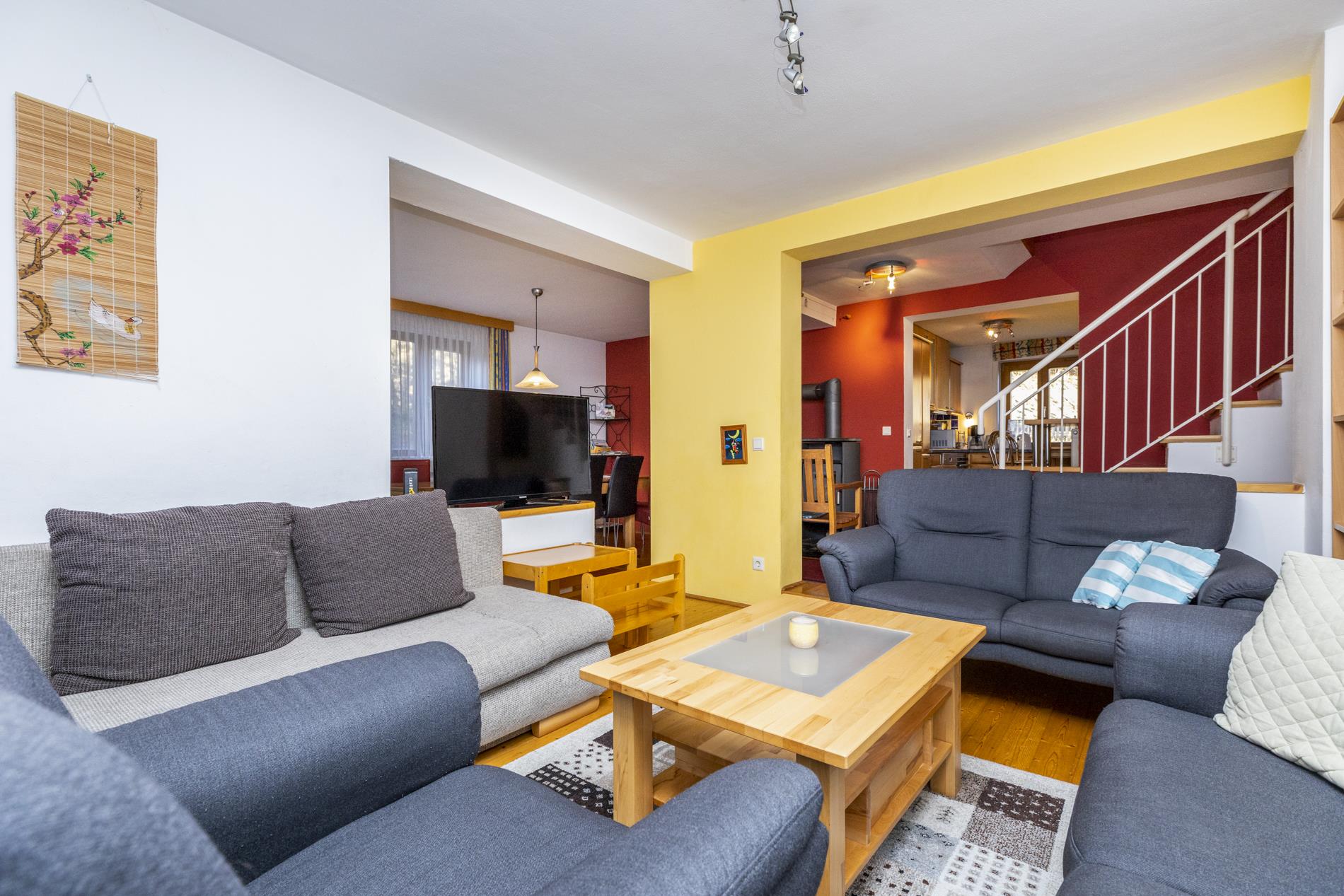 Das Ferienhaus liegt am Ortsanfang von Flachau 400 m von der Liftstation Spacejet entfernt, Langlaufloipen und Winterwanderwege sind in nächster Nähe zum Haus. Das Haus für 4 bis 10 Personen hat 150m² Wohnfläche, es gibt 5 bzw.6 Schlafzimmer (ein Zimmer im Dachgeschoss ist ein Durchgangszimmer) und ist damit auch für Gruppen sehr gut geeignet. Es ist komfortabel eingerichtet und verfügt über einen Kaminofen mit Sichtfenster zum Feuer. Sehr gemütlich eingerichtet ist auch das Wohnzimmer und der Essbereich. Die Küche ist in modernem Standard mit E-Herd, Mikrowelle, Geschirrspüler, Spüle, Kaffeemaschine, Kühlschrank mit Gefrierfach ausgestattet.Im Keller befindet sich das Schischuhlager mit Schischuhtrockner. In der versperrbaren Holzhütte hinter dem Haus können die Schier gelagert werden.Besonders erwähnenswert ist der penthouseartige Dachgeschoß-Schlafraum mit herrlichem Ausblick auf die Schipisten vom Grießenkar sowie die Flachauer Berge.