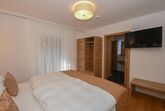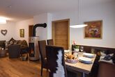 Ein Schlafzimmer mit Kingsize-Boxspringbetten mit großem Badezimmer mit Dusche, getrenntem WC, Radio, Kosmetikspiel, Fön und Infrarotkabine. Zweites Schlafzimmer mit Kingsize-Boxspringbetten, einer gemütlichen Couch (Zusatzbett) westseitig gelegenem Balkon und eigenem Badezimmer mit Dusche, WC, Radio, Kosmetikspiel und Fön. Sehr großzügiger Lebensraum mit Kaminofen, Kuschelecke mit Ausziehcouch (Zusatzbett) und großem Mühlsteintisch, großer Flatscreen mit Kabel-TV, komplett ausgestatteter Küche mit Esstisch. Großer Balkon mit Blick auf den Hochkönig und das Gartenhaus. Genügend Platz für ein Gitterbett.